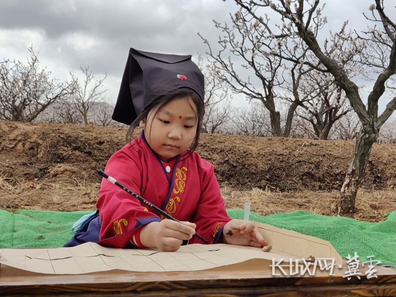 儿童学习杏花知识。长城网·冀云客户端记者 王晶 摄