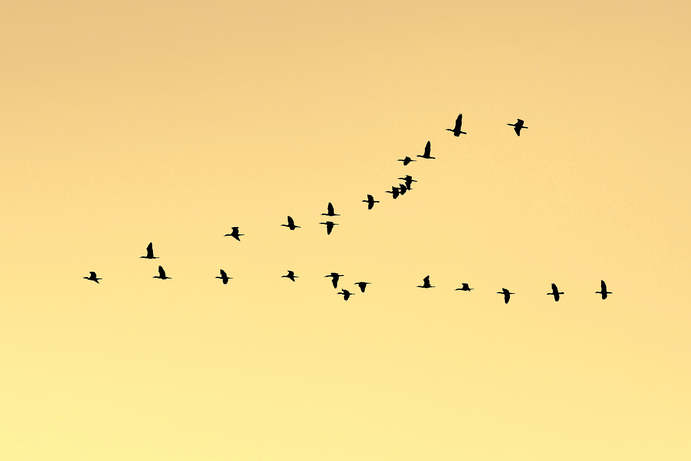 鸬鹚在迁安市黄台湖上空迎着霞光飞来。李晓松 摄