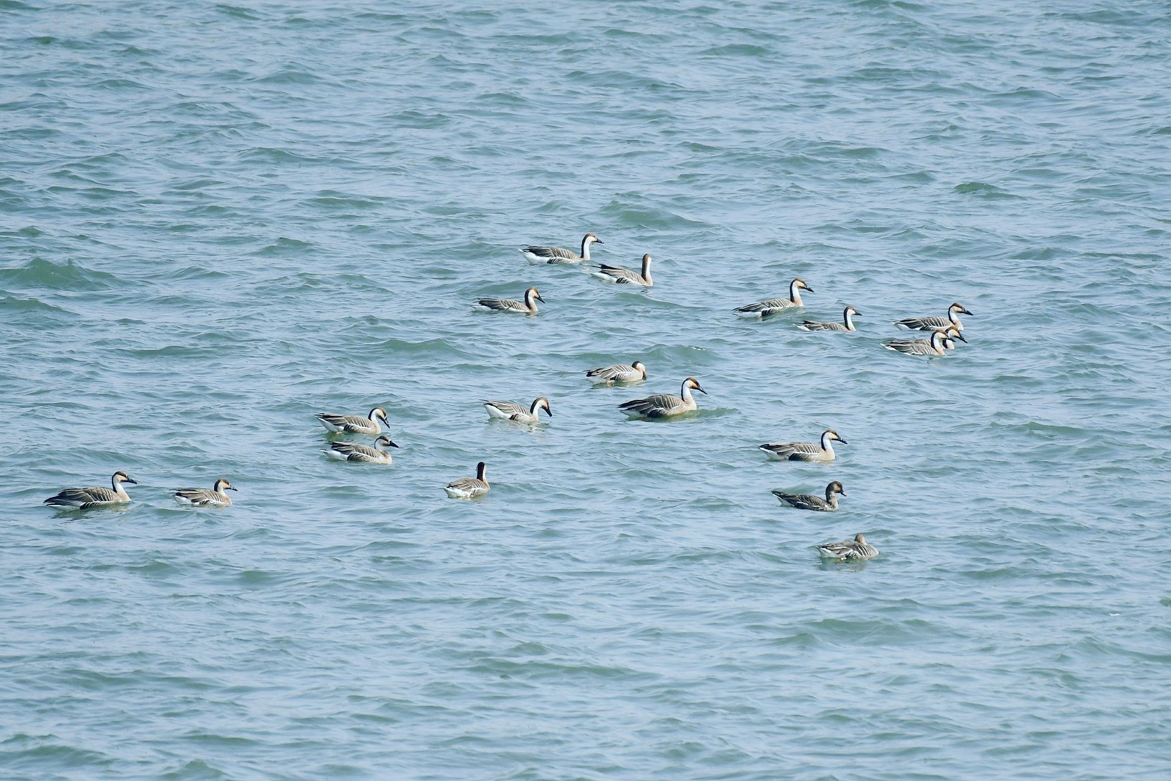 一群大雁在迁安市黄台湖水中觅食。李晓松 摄