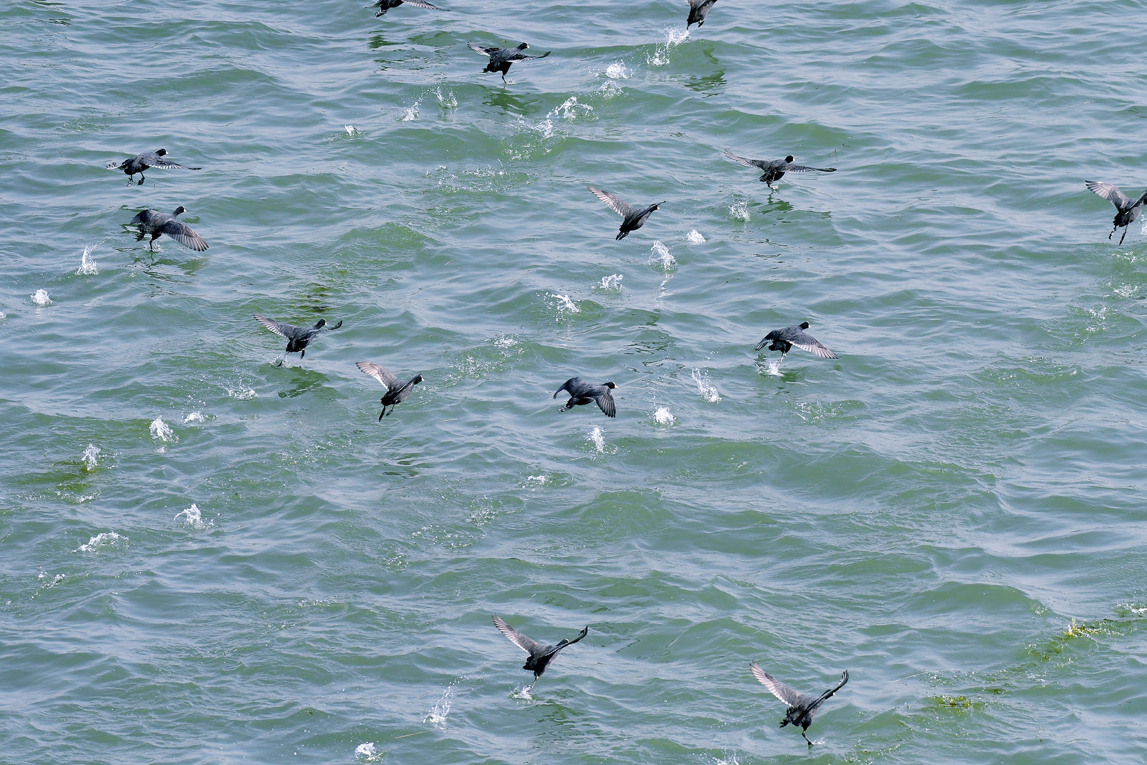 白骨顶鸡在迁安市黄台湖水面上踏水疾驰。李晓松 摄
