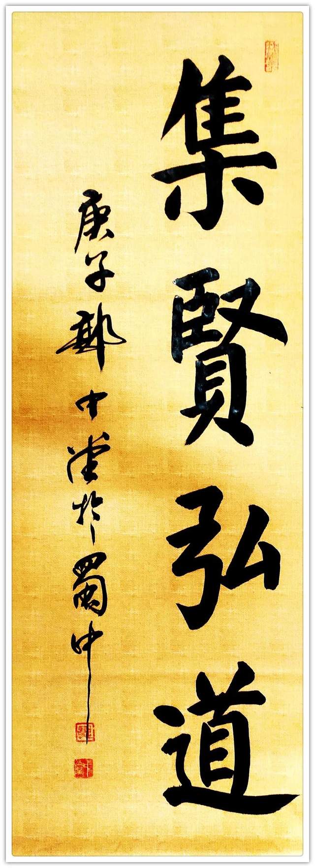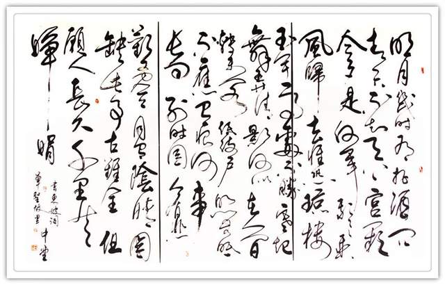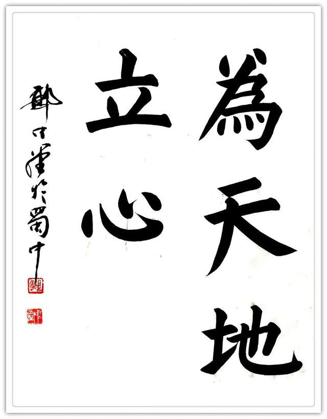 中堂先生在甘肅高校執教多年,文史哲多學兼脩, 閲讀廣博。受中华關隴文明世風熏陶,早年在昆侖山修道時,拜草聖張芝故里敦煌三危山中的“筆神老祖”修道髯翁學書,得到筆神老祖的点化,从小主习柳楷兼習敦煌遺書至四十岁。上世紀八十年代在隴上成名掛字。一九九三年因工作調入重慶後,以甘肅博大雄厚的人文為基礎,吸納巴渝山水之鍾靈毓秀,进入十年行草书练笔,書法功力深厚,真 行 草 隶 篆五体皆能。精研王羲之笔法,融會草聖張芝《冠軍帖》筆路。用筆内剛外柔,清雄大氣,外势强健,凌空回转,流暢自如,尤其精於草書,狂草书雄强奔放。有志于繼承創新,自立一體。