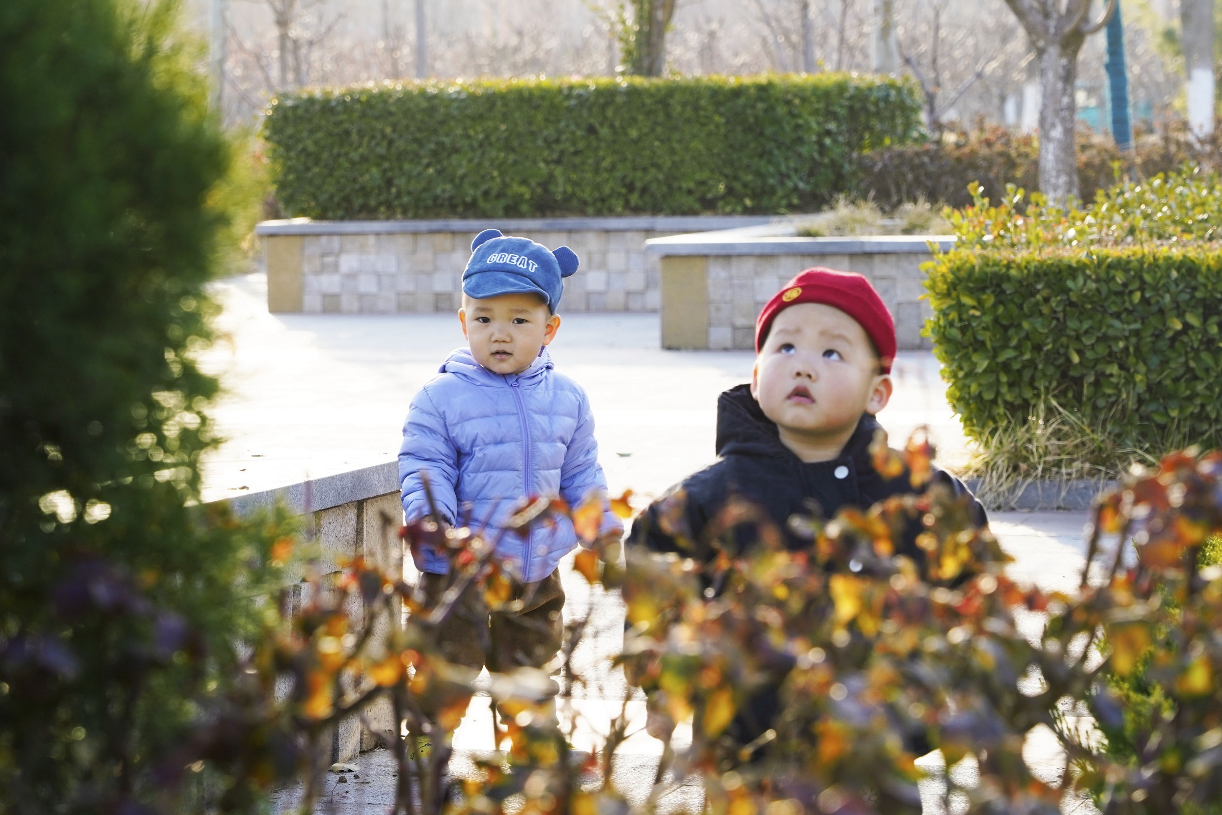 在山东省德州市武城县弦歌湖公园,小朋友正在感受春天的气息。(来源:武城县融媒体中心)