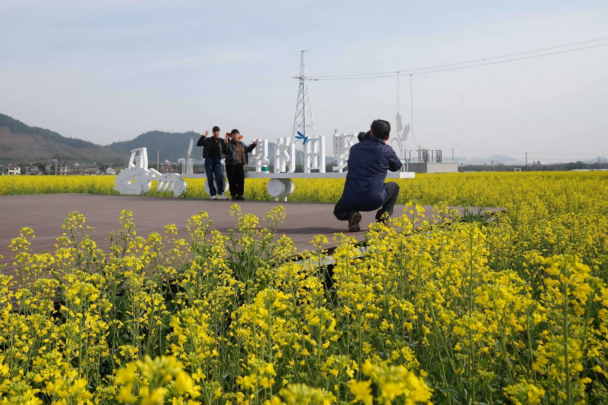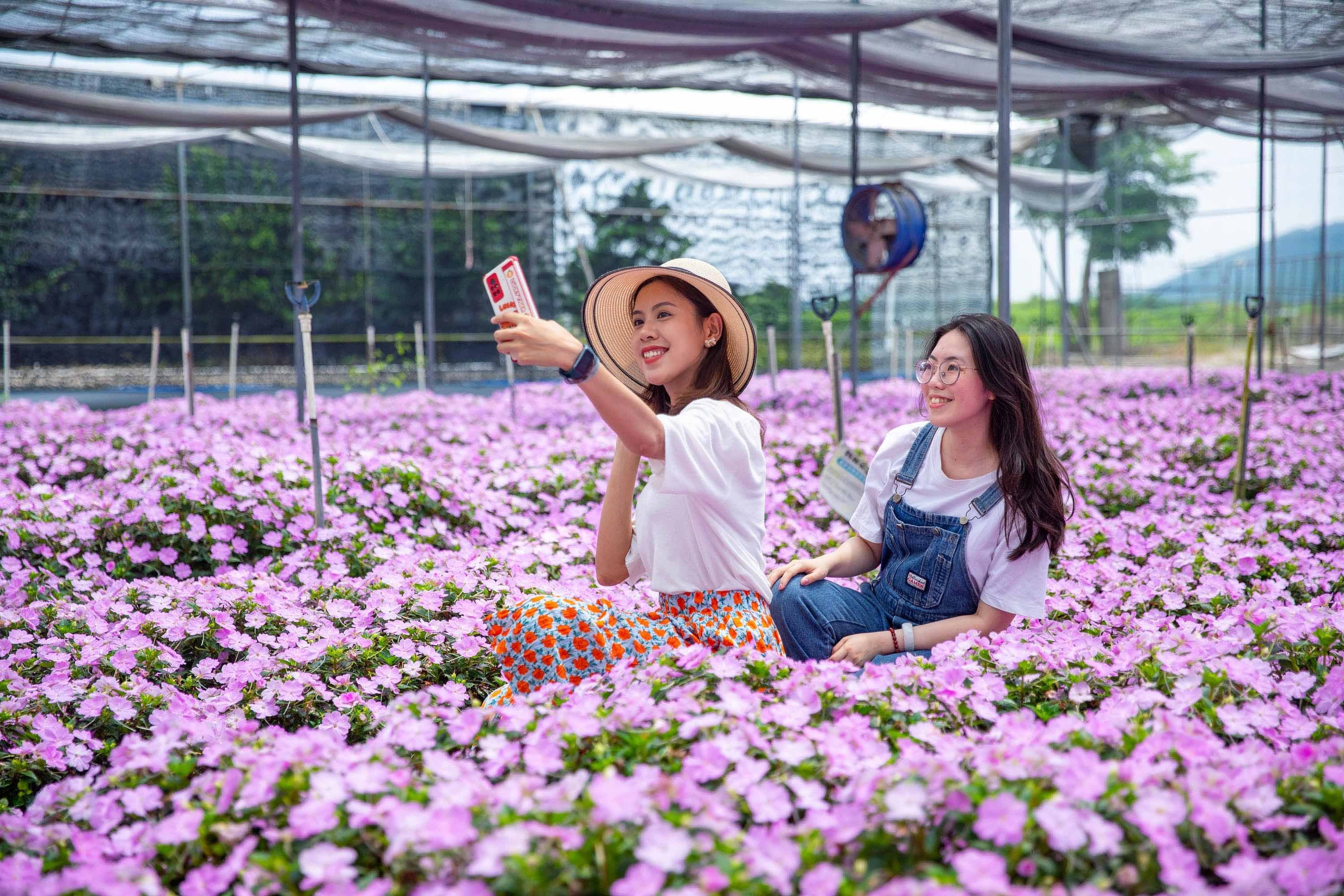广东省佛山市高明区盈香生态园的花海迎来了最佳观赏期,吸引众多踏春赏花的游客拍照“打卡”。(来源:高明区融媒体中心)