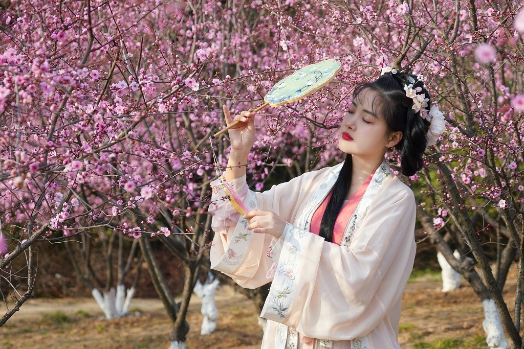 在江苏省苏州市张家港市香山梅岭,盛开的梅花吸引了大量游客来此赏花拍照。(来源:张家港市融媒体中心)
