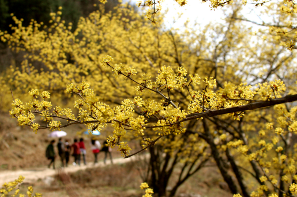 在陕西省汉中市佛坪县,游客畅游在山茱萸花花海中。(来源:佛坪县融媒体中心)