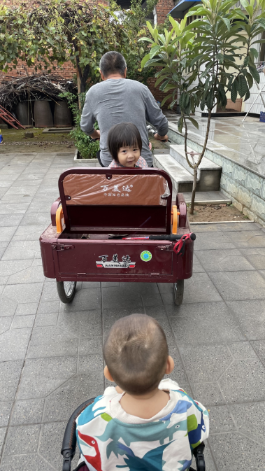一年、两年,时间一直往前,爸爸学会了熟练地用左手吃饭、洗脸、刷牙,接受了他认为只有老人才会骑的三轮车,开始和他的孙女玩儿追爷爷的游戏。那天下午,快要落山的太阳把阳光洒满了整个院子,爸爸骑着三轮车在最前边,姐姐骑着小自行车在后面追爷爷,我推着还没学会走路的弟弟在后面追姐姐,姐姐一边让爷爷骑得再快点一边回头看弟弟有没有追上他,弟弟挥着小手蹬着小脚哈哈大笑,耀眼的阳光也变温柔了。