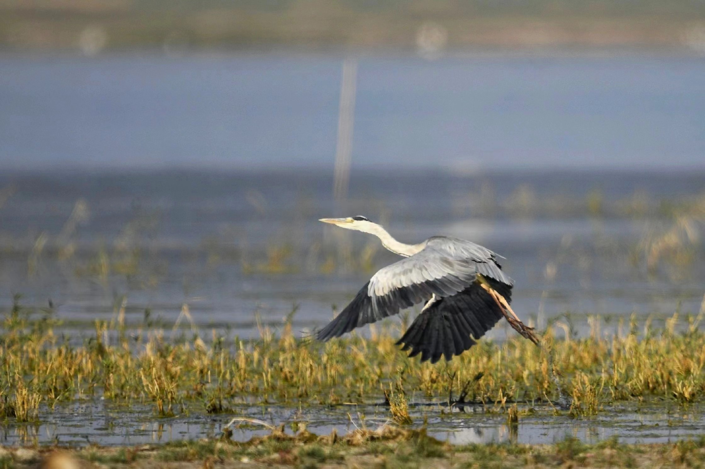 苍鹭飞翔。