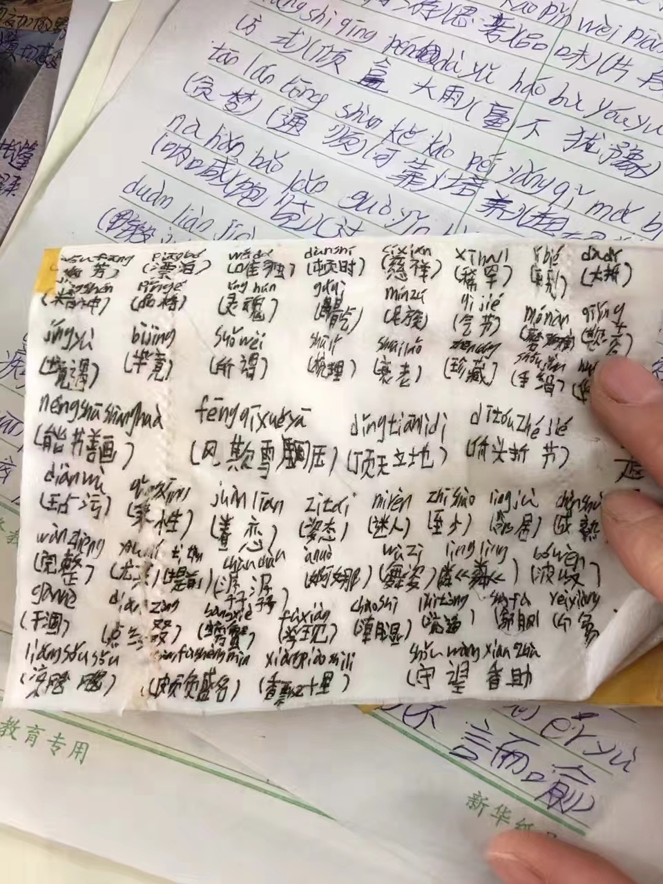 顽皮的小朋友将作业写在了卫生纸巾上。张颖 摄