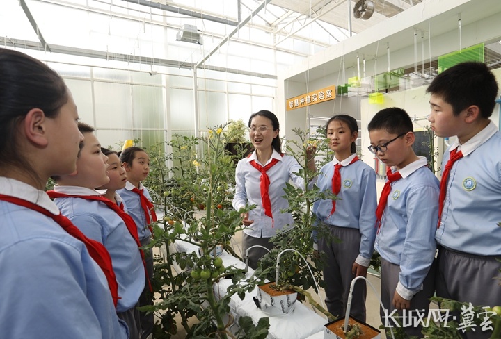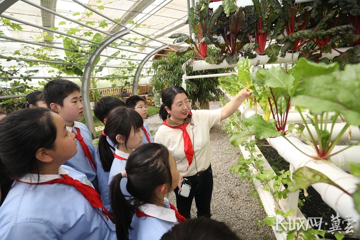 同学们感受农业现代化栽培技术的神奇。通讯员 吕继东 摄