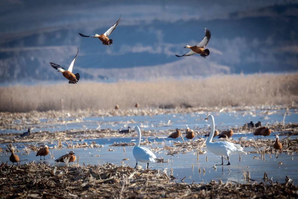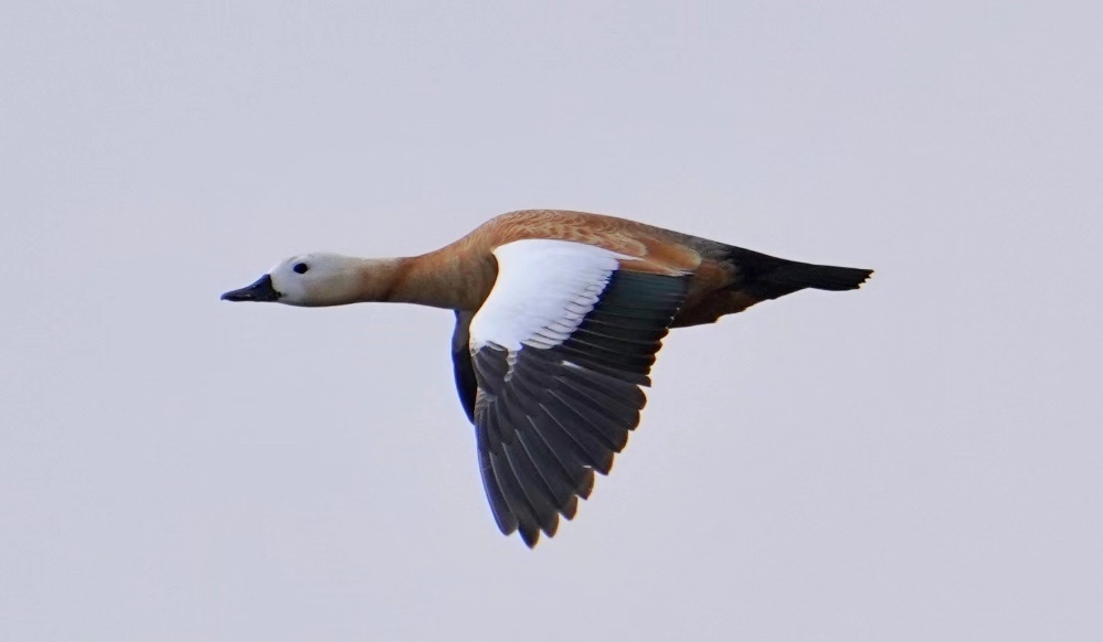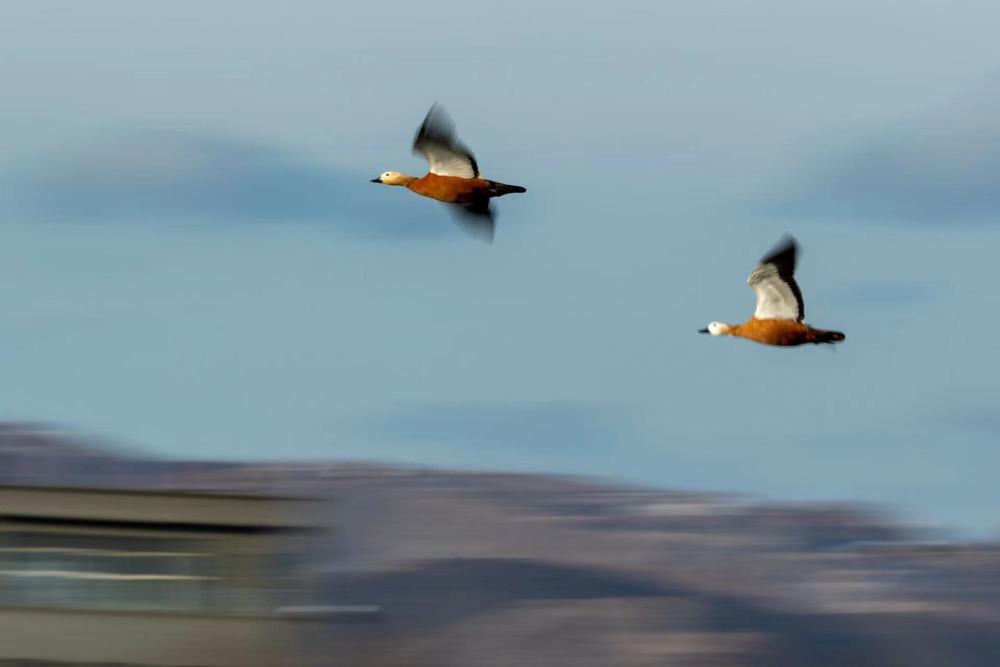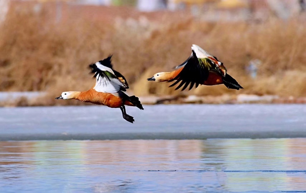 赤麻鸭在宣化洋河上空飞行。张富元 摄