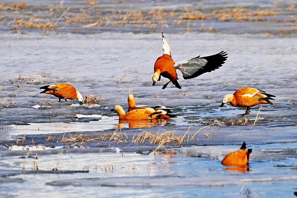 赤麻鸭在宣化洋河自在嬉戏。李彦学 摄