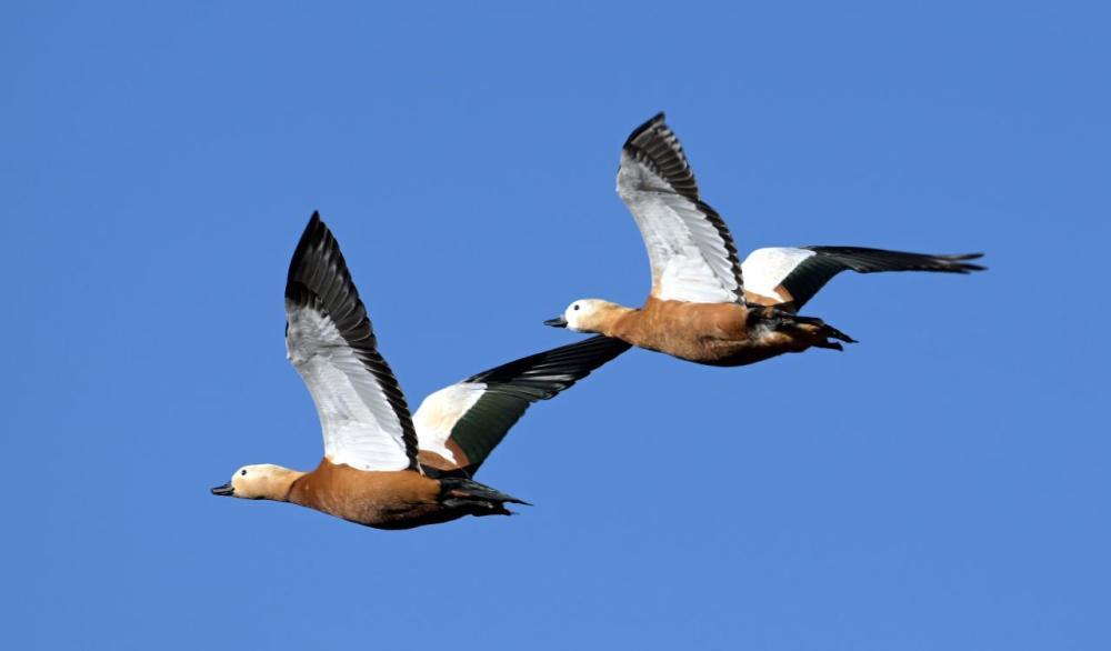 赤麻鸭在宣化洋河上空飞行。张乙峰 摄
