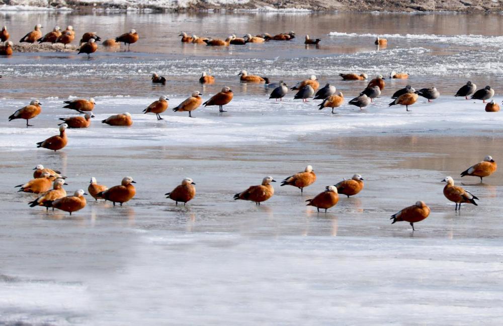 赤麻鸭在宣化洋河休憩觅食。张乙峰 摄