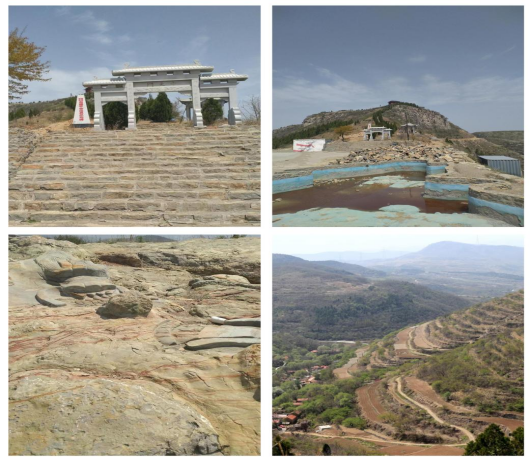 经过两小时的坐谈,我们了解了村里的基本村情。接着李书记邀请我们实地参观一下村子的几处景点。于是我们乘车上山,直奔三界顶。该三界顶是淄川山脉的第二高峰。其高度900余米,是淄川,青州和临朐的三县结合部。三界顶的中天门向上部分,是临朐的地界,而中天门向南,有一处百余米长,40余宽的平坦山梁,便是山桥村的地界。在平坦地段南侧不远处,有一方圆约30余米的凸起的山石。那山石高低不平,最上端有一处二龙戏珠的图形,似有人工雕刻之痕迹。但也不失为一道很好的景观区域,当地人称其为龙石。看完龙石后,我们沿山梁护栏向西眺望,但见山凹里的平坦处,有一自然形成的石质物体,如城如堡,门窗可见。李书记说那里叫龙台,是当地人对它的尊称。那龙台高出地面20余米,上顶平整,棱角分明,直上直下,浑然天成,令人称奇。从中天门返回,我们又驻足从山上向下观看山桥村全景。但见山桥村红瓦石屋,依山势而建,村民院落,绿树成荫,炊烟枭枭,鸡鸣犬唱,好一幅山村美景图。