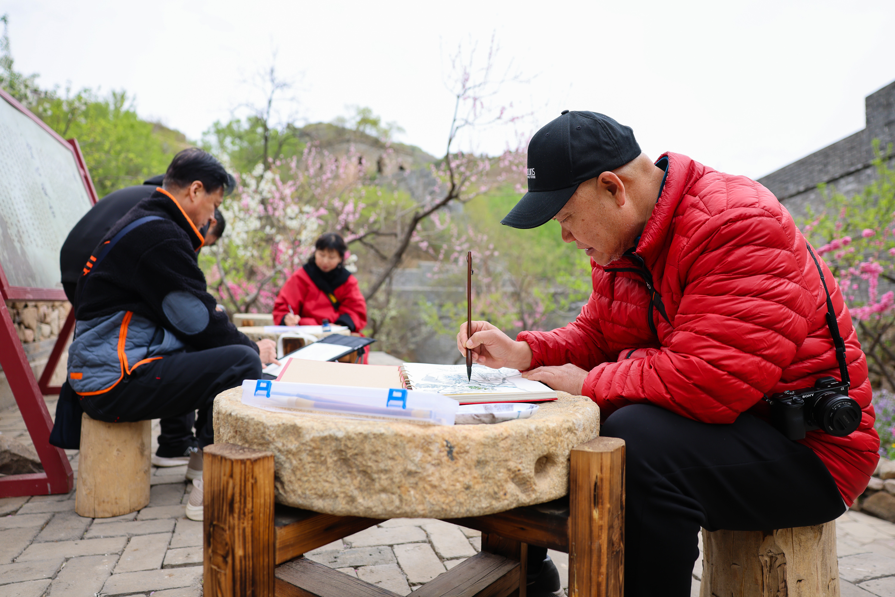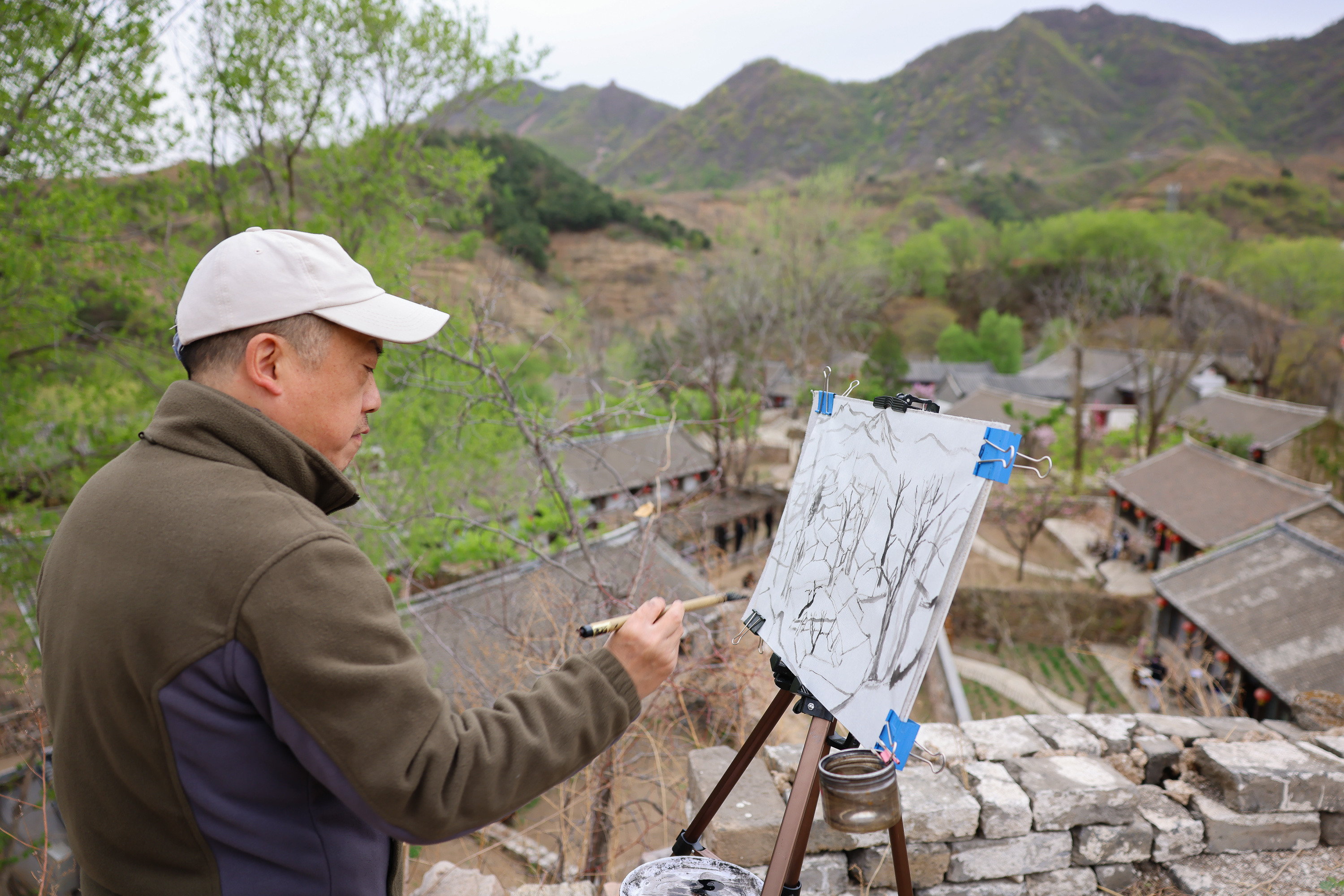 这么近、那么美,周末到河北”唐山迁西行——百名书画家绘长城、赏春花系列活动现场。李少华 摄