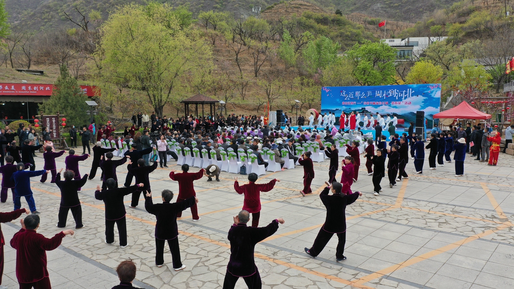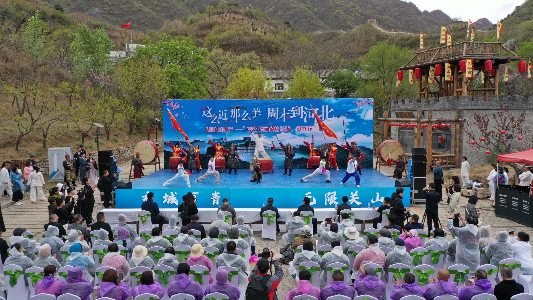活动邀请了100名优秀画家绘长城、赏春花、观非遗,给游客和书画爱好者奉上一场文化盛宴。同时,现场还开展特色非遗展演、长城旗袍秀、太极表演、非遗文创商品展等活动,吸引了众多游客观看。
