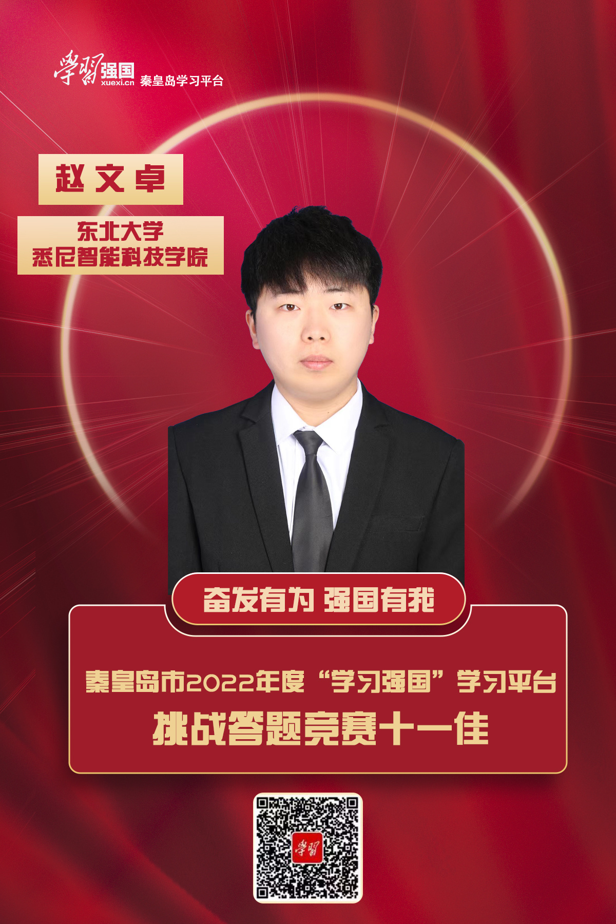 赵文卓:奋发有为强国有我。