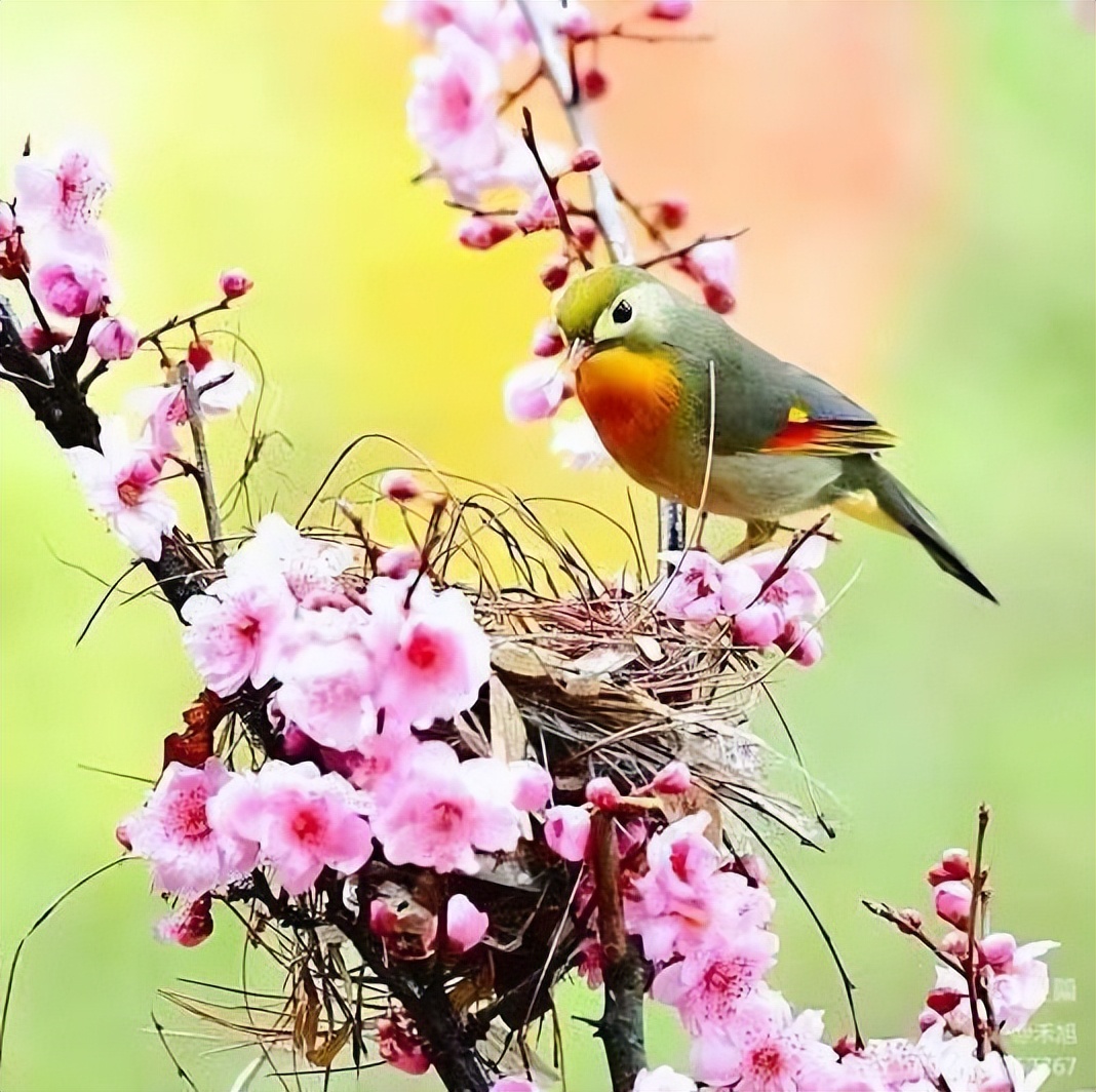 不知醉景谁裁绣?春雨钟情浇灌勤。