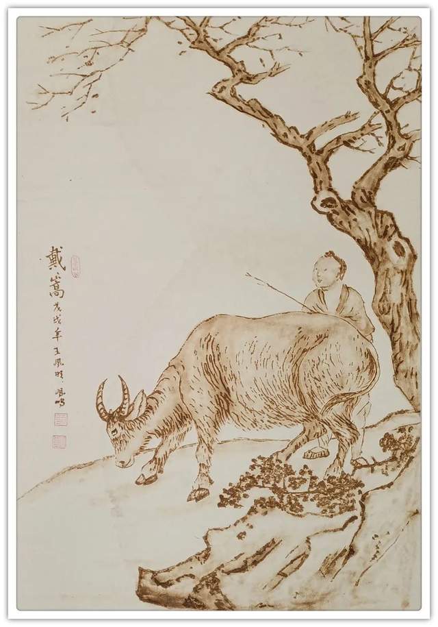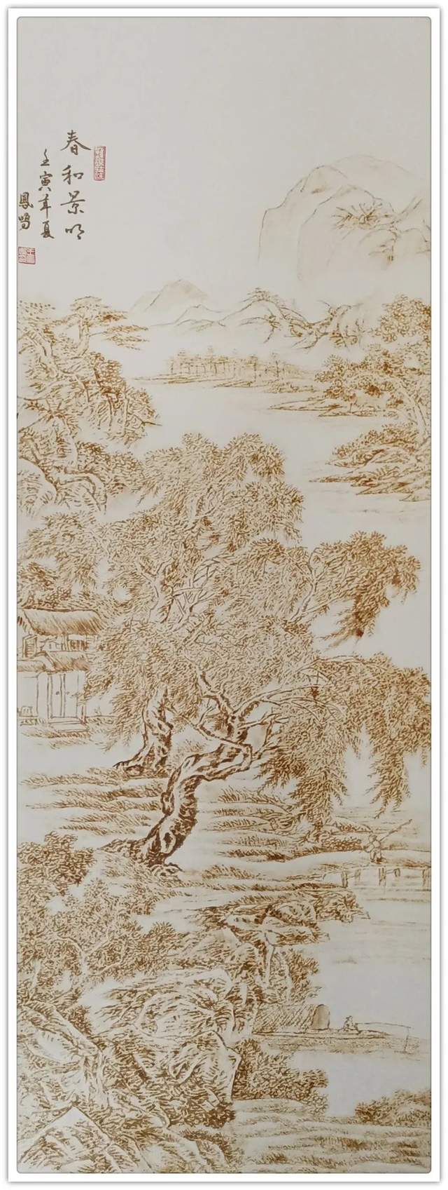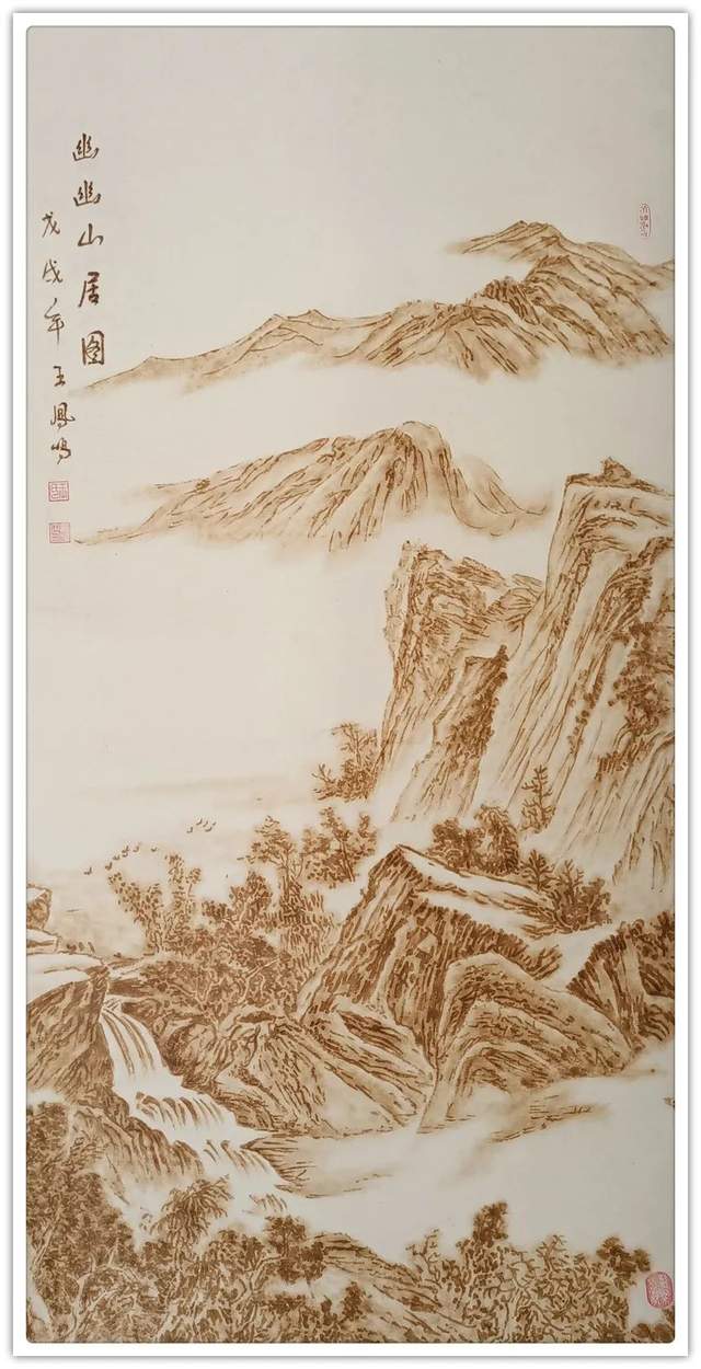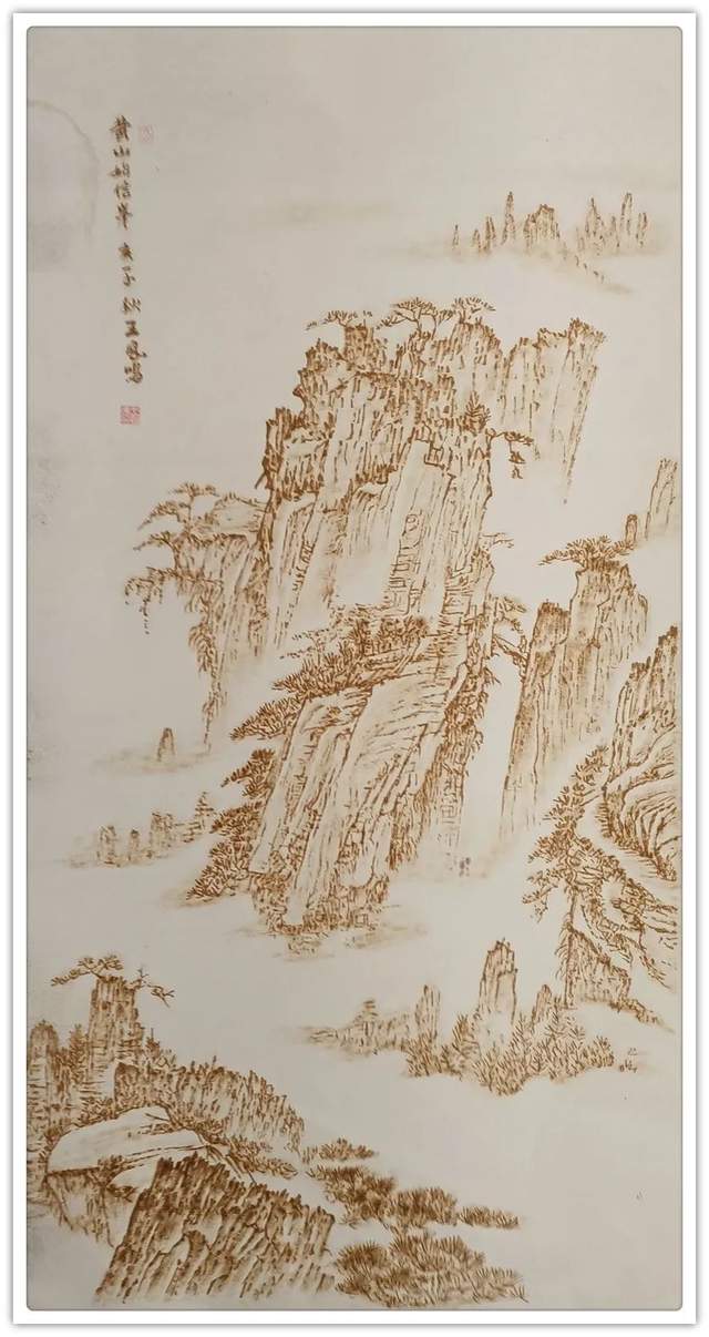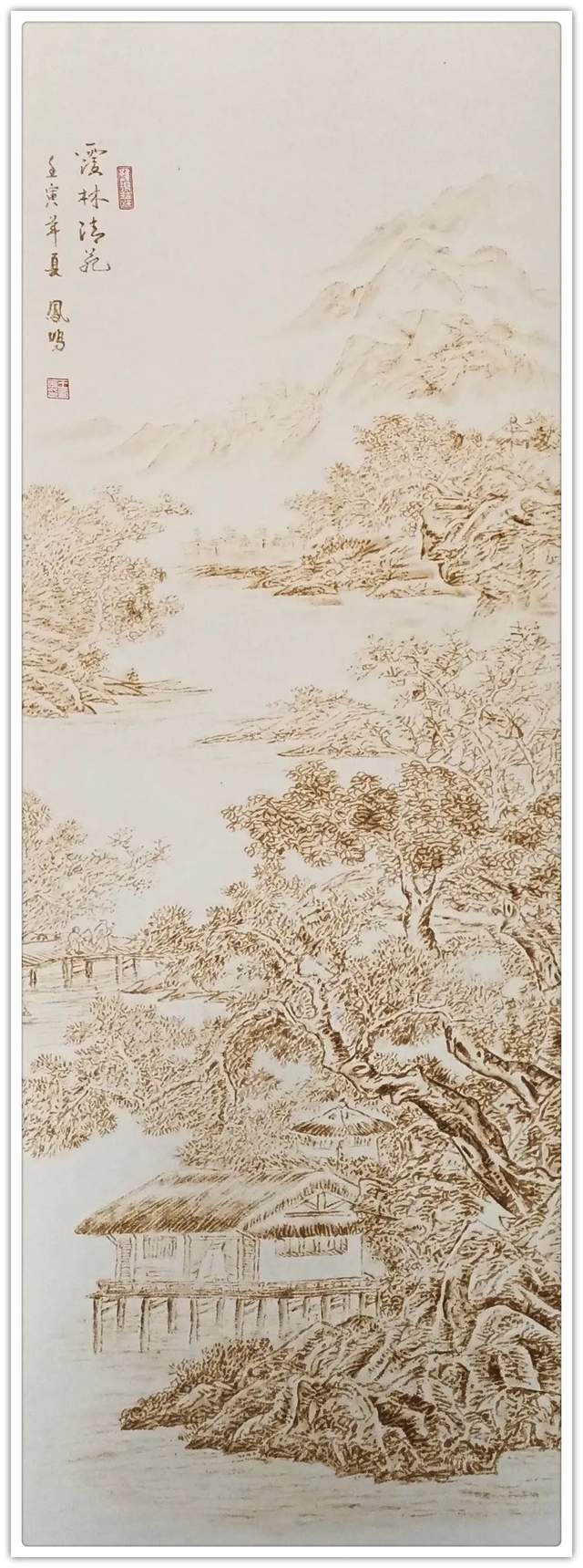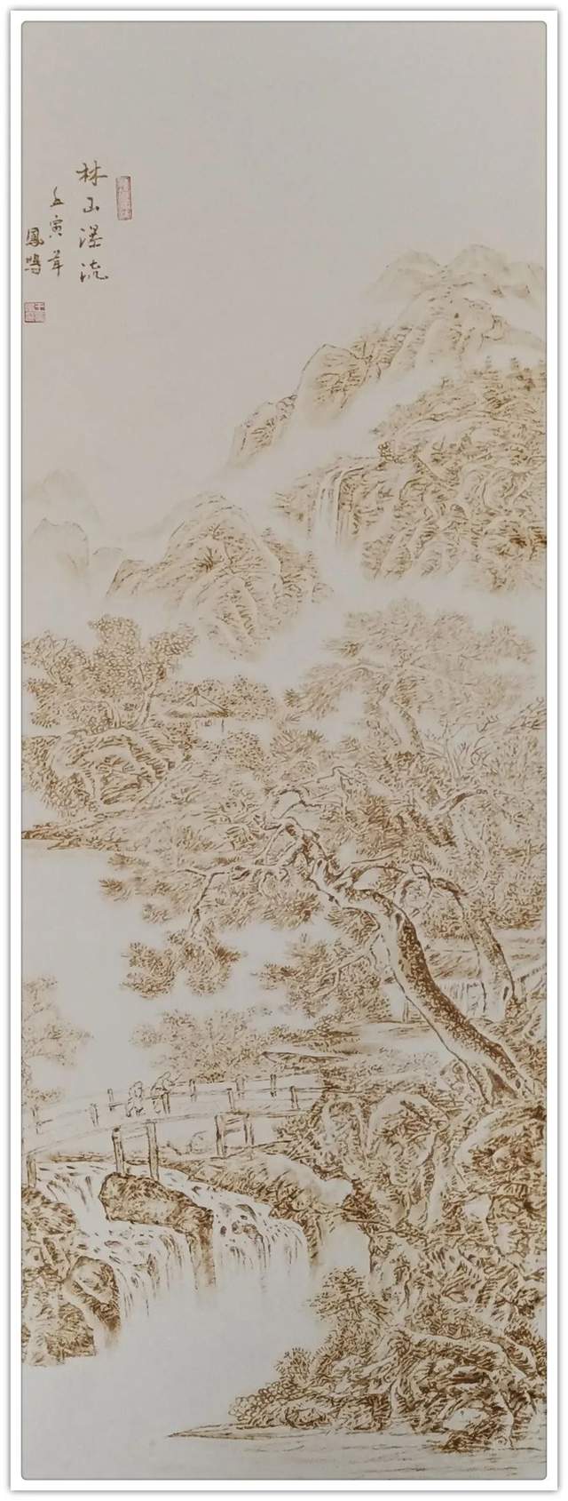 2013年,王风鸣已经可以在薄薄的宣纸上烙画了。
