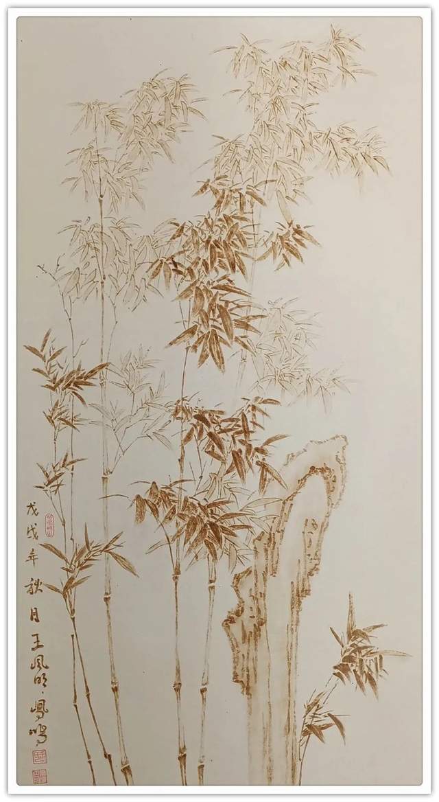 1991年起,王凤鸣开始在纸上烙画。“火候把握不住,不是浅了就是深了,经常把纸烧穿”。王凤鸣烙惯了木材,对于烙纸非常不适应,心态的平衡、速度的快慢、手法的轻重,烙纸的讲究太多了。王凤鸣认为自己路子太野,就进入中国国画学院学习,学业完成后,专攻中国传统烙画。