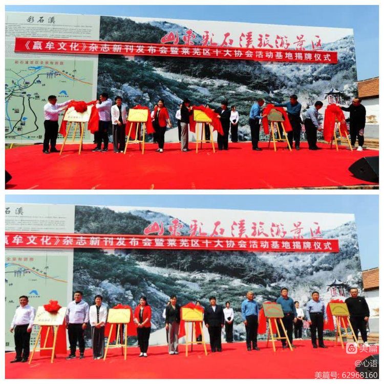 “五月花海,美景当属彩石溪;乘风破浪,高庄街道进行时。”在这美好的季节里,2023年5月9日上午,繁花似锦的彩石溪风景区,盛况空前,掌声不断。与会人员共同见证《嬴牟文化》杂志首刊发布和莱芜区文联(区社科联)10大协会创作基地揭牌。揭牌启用,这是莱芜区文艺社科界的两件大事、喜事。
