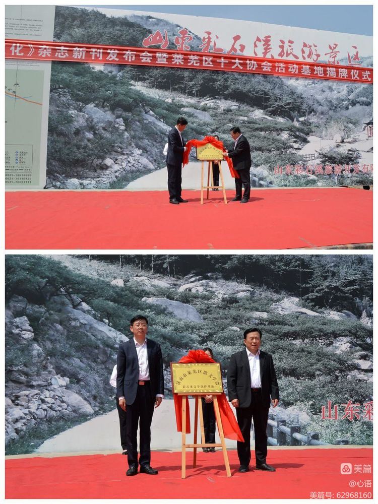 区委常委、宣传部部长王宁,区散文学会主席孙建修,共同为莱芜区散文学会彩石溪文学创作基地揭牌。