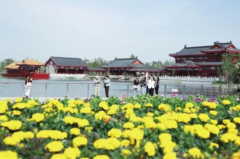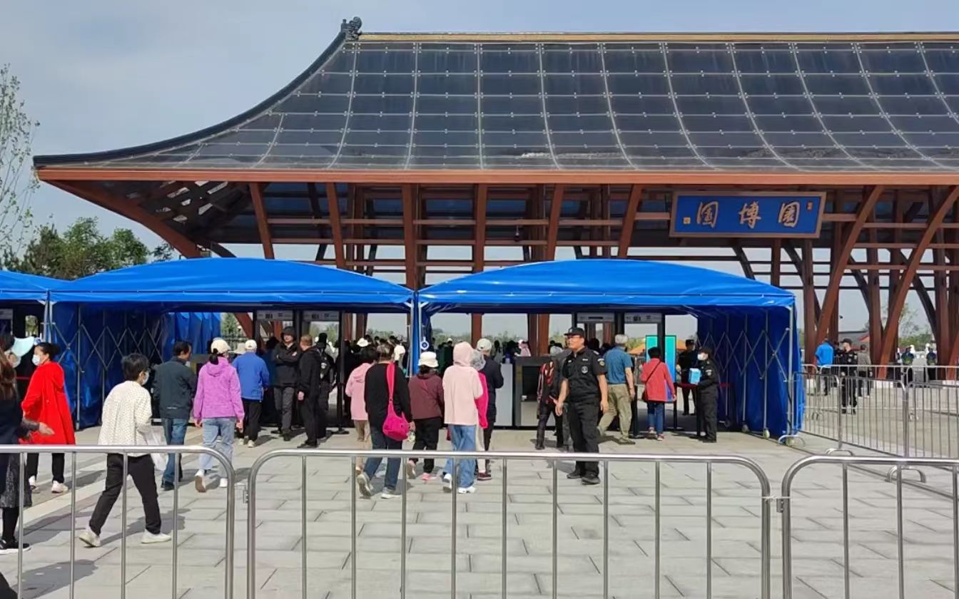 5月9日,沧州园博园进行首轮载客压力测试,2799名游客近距离欣赏园林美景。
