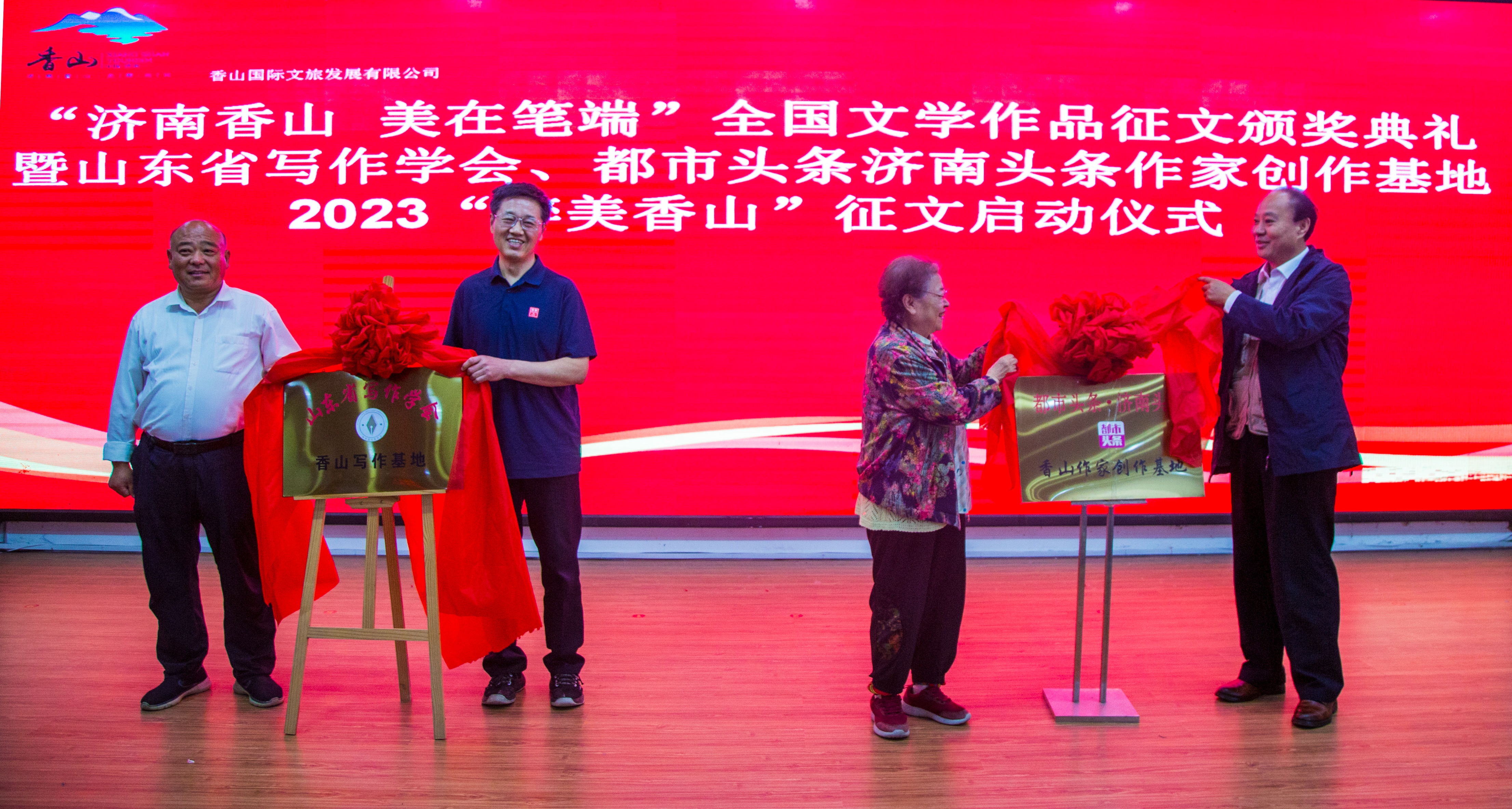 2023年5月21日上午,“济南香山 美在笔端”文学作品征文颁奖典礼暨山东省写作学会香山写作基地、《都市头条·济南头条》香山作家创作基地揭牌、2023“醉美香山”作品征文启动仪式在山东香山国际旅游度假区隆重举行。仪式上, 香山国际文旅发展有限公司董事长张微建为为毛泽东主席特型演员刘般伸颁发香山国际旅游度假区形象大使聘书。