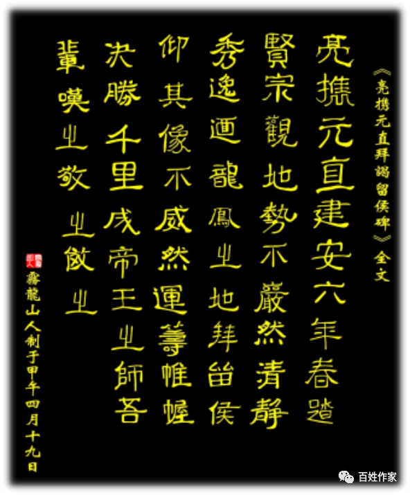明朝诗人杨慎有诗云:“滚滚长江东逝水/浪花淘尽英雄/是非成败转头空/青山依旧在/几度夕阳红。”英雄已去千年,但人去业存,精神明灯不息,他的智慧永存人世之间,他的灵魂永不泯灭于天地,英名亦必与日月同辉,天地同光!