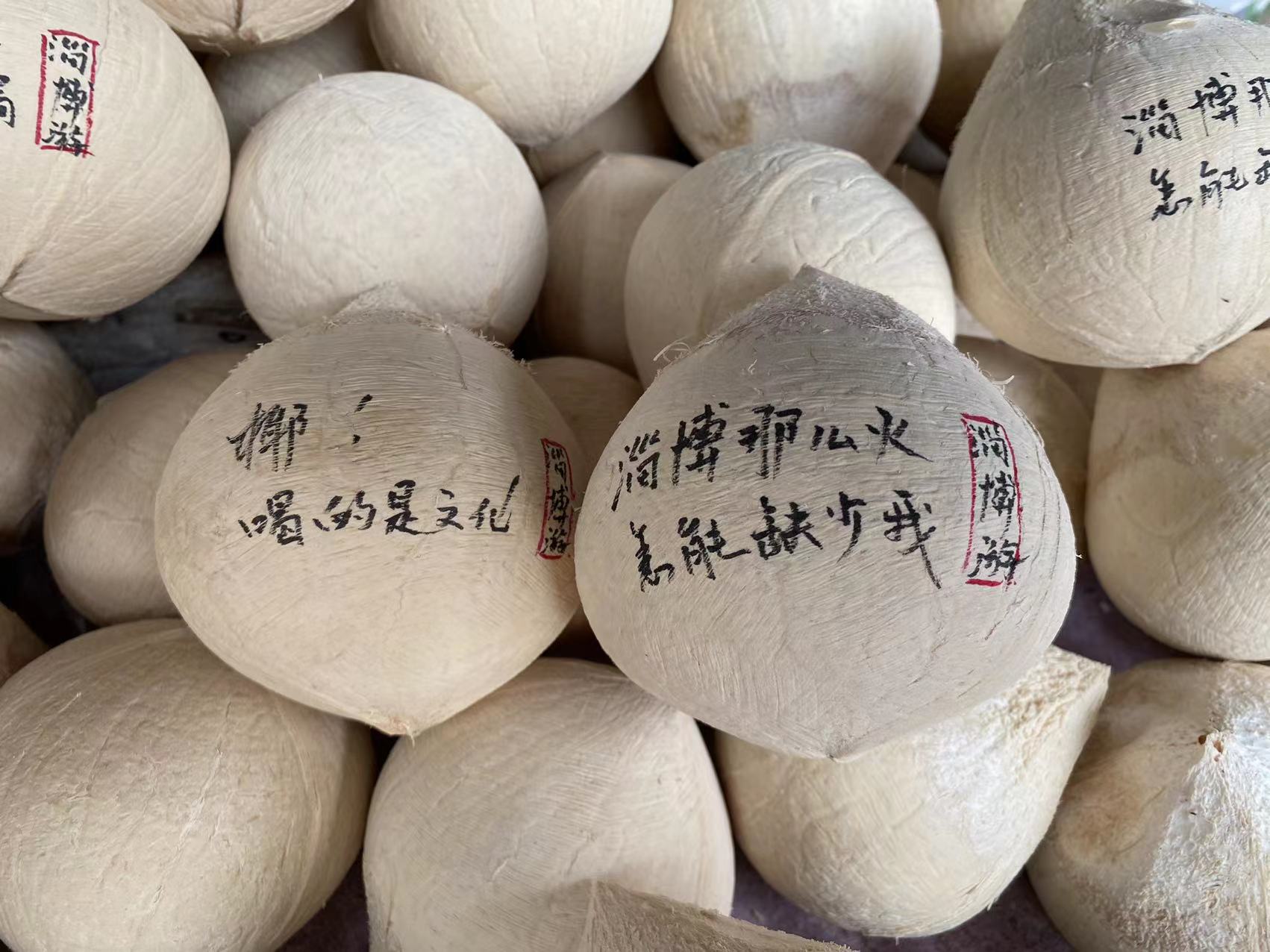 热热闹闹的大街上,最吸引我的不是各种特色美食,而是淄博人所创造的特色网红文化。一些看起来很平凡的事物和食物,都被他们贴上一种生动有趣的文化标签。在一个椰子摊前,写着这样的字眼“椰子下个蛋”,每个椰子都被纸包着,上面写着各不相同的趣味文字。什么“人间烟火,首选淄博”“有淄有味”;什么“淄淄不倦”“博博生机”;什么“淄博那么火,怎么缺了我”等等,每一条妙趣横生,让我禁不住用手机一个个拍了下来。有一种豆腐,他们题名叫“乾隆同款”;有一种牛肉,他们命名为“宫廷酥牛”;还有一种煎包,很小,像拇指,写着非常风趣的介绍:“白白胖胖,充满希望”;有一种竹饮,他们叫作“熊猫抱抱”。几乎每一条都展现着不可遏制的想象力,每一处都流淌着文化,流淌着诗情和画意。