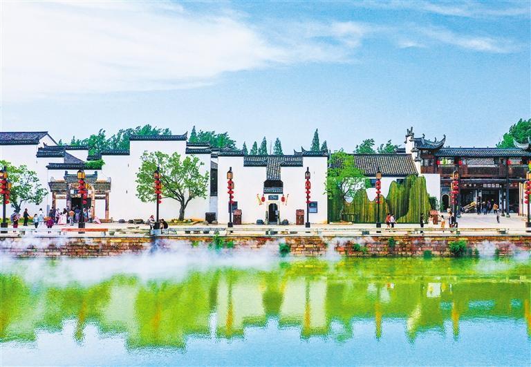安徽铜陵市义安区犁桥水镇旅游区,白墙青瓦的徽派建筑倒映在河面上,显得格外生动。陈晨 摄(中经视觉)