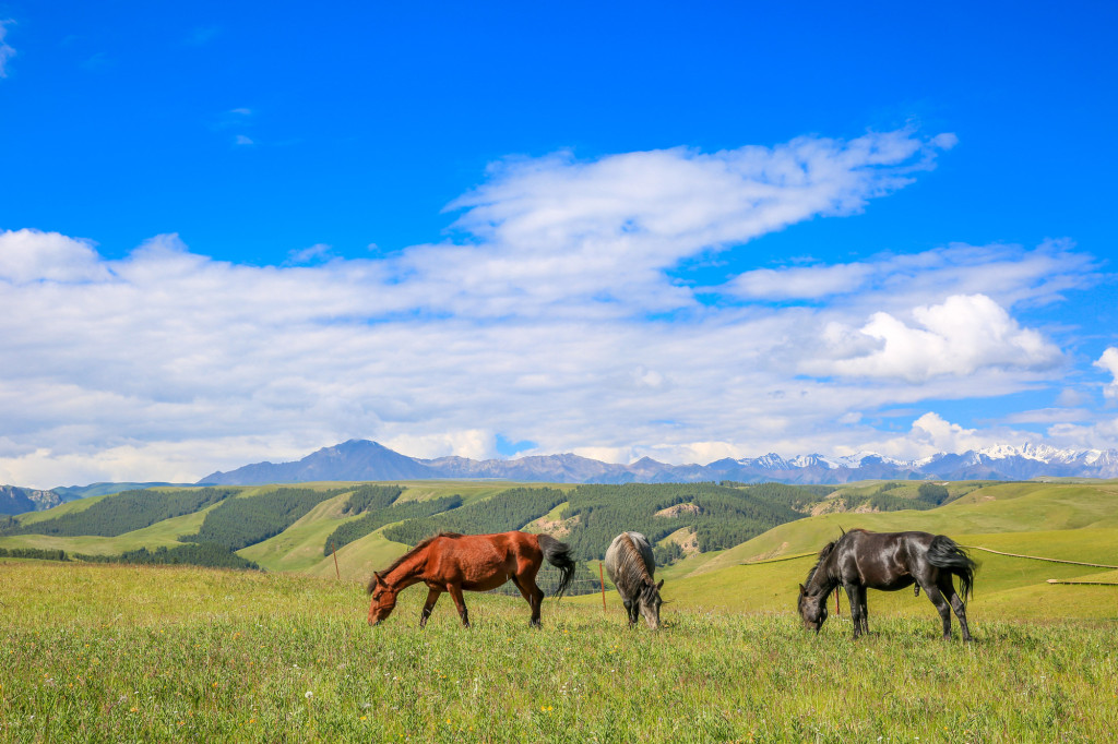 甘肃张掖康乐草原上的牧马