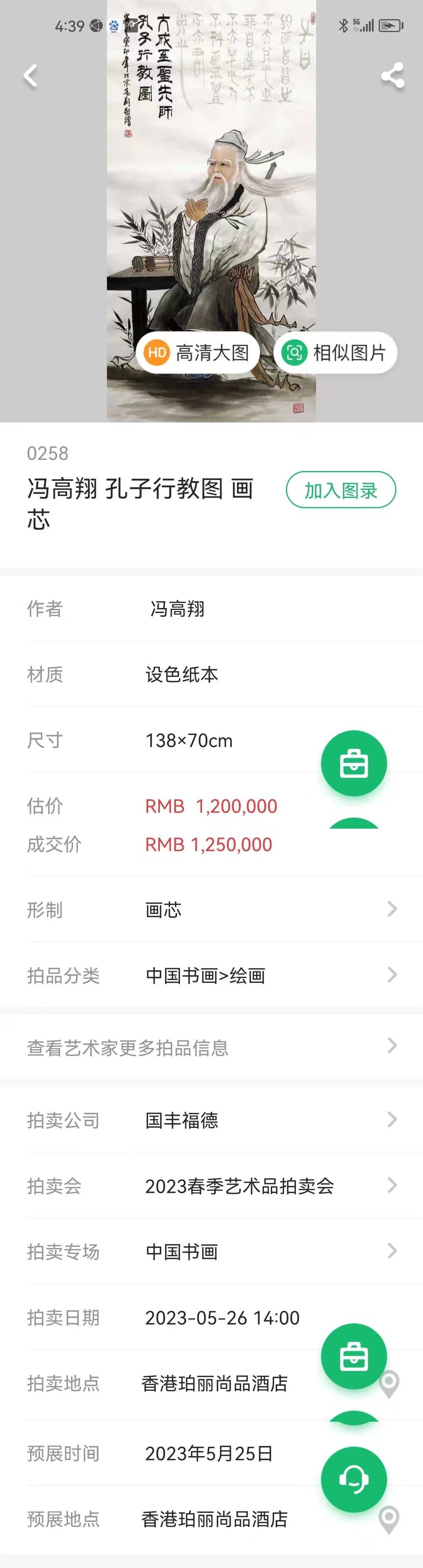 《孔子行教图》规格:138x70cm,2023年春季艺术品拍卖会以壹佰贰拾伍万元(1250000元)落槌!