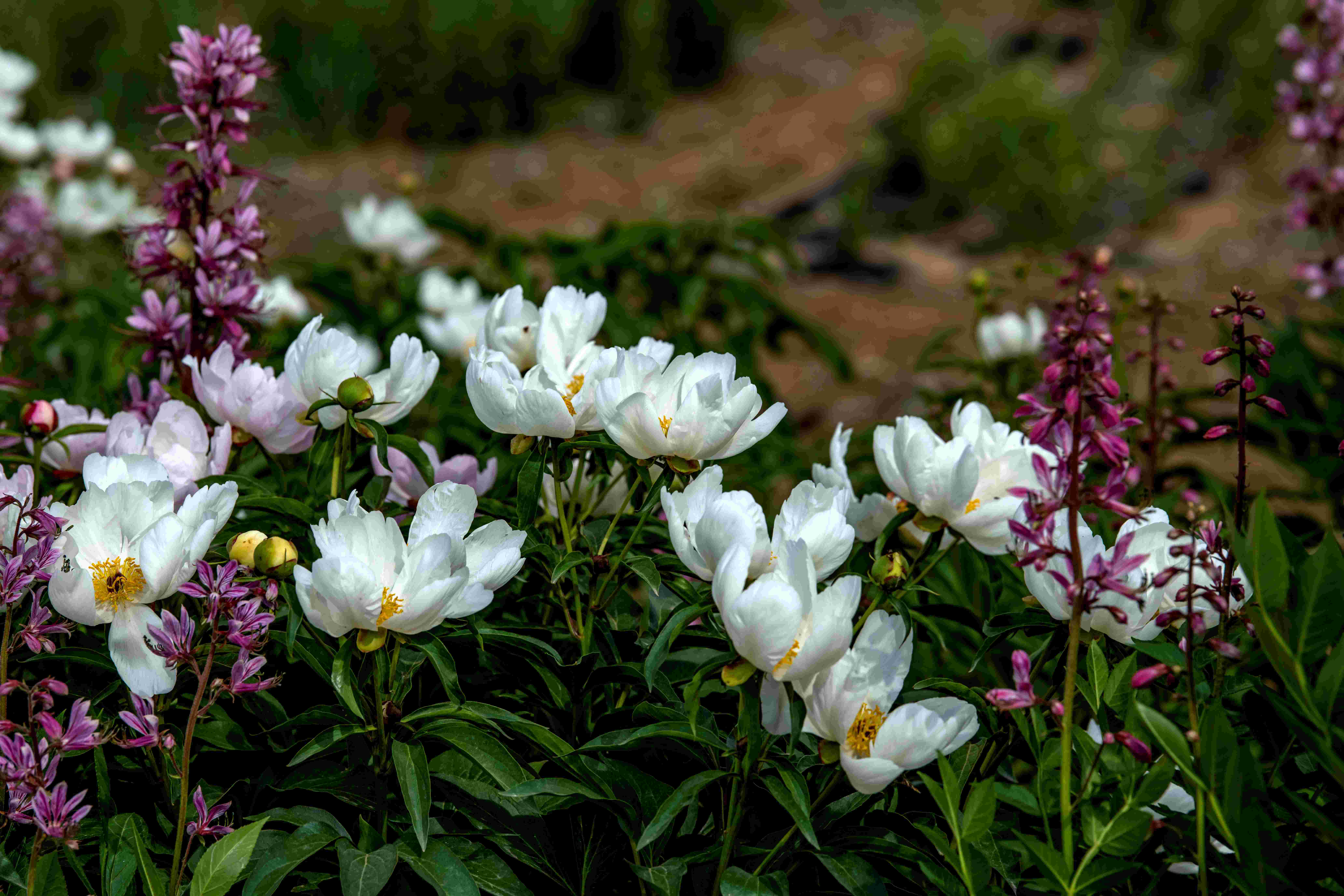 赤芍和白芨混合绽放。