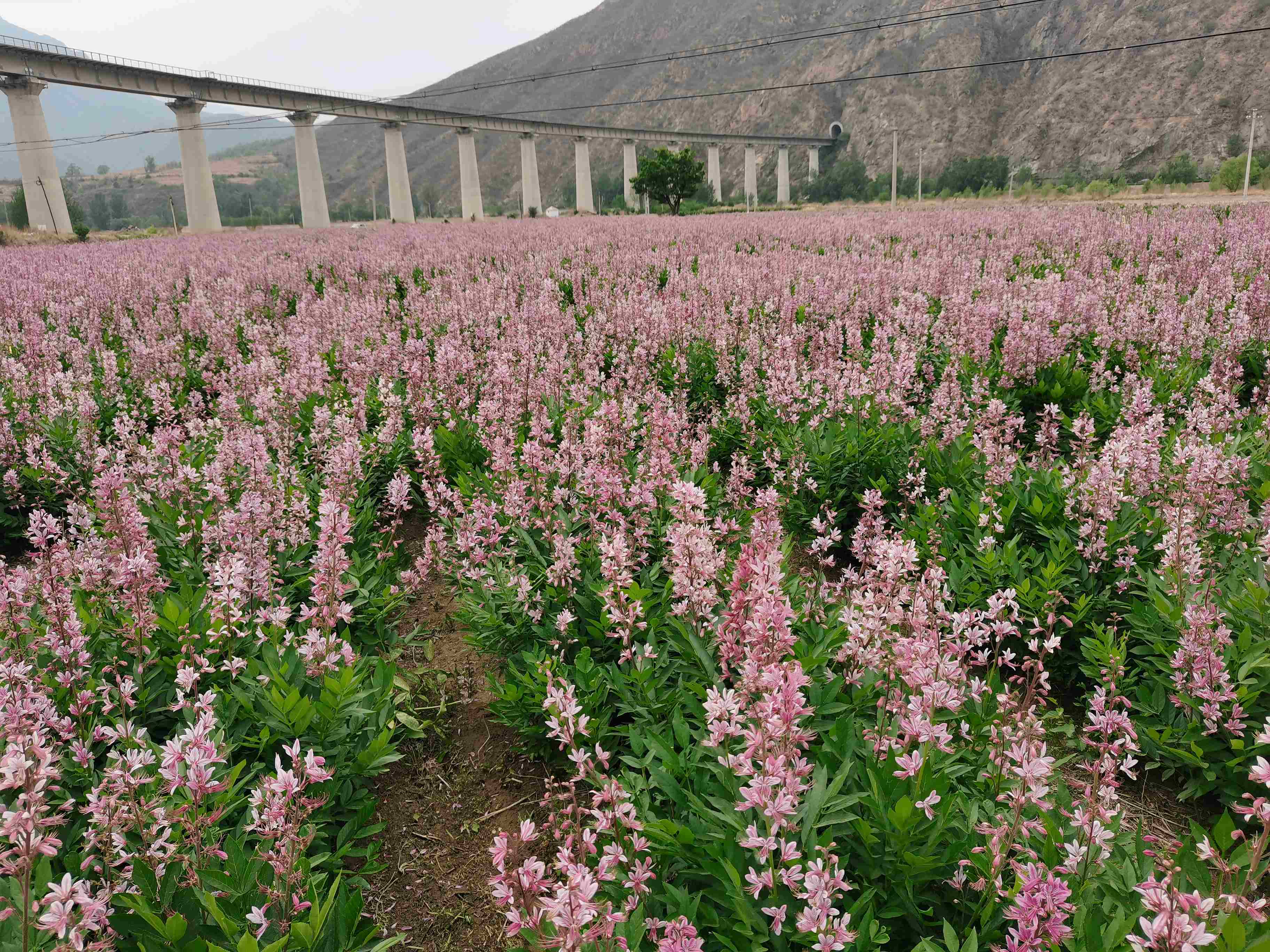 成片的白芨花海。