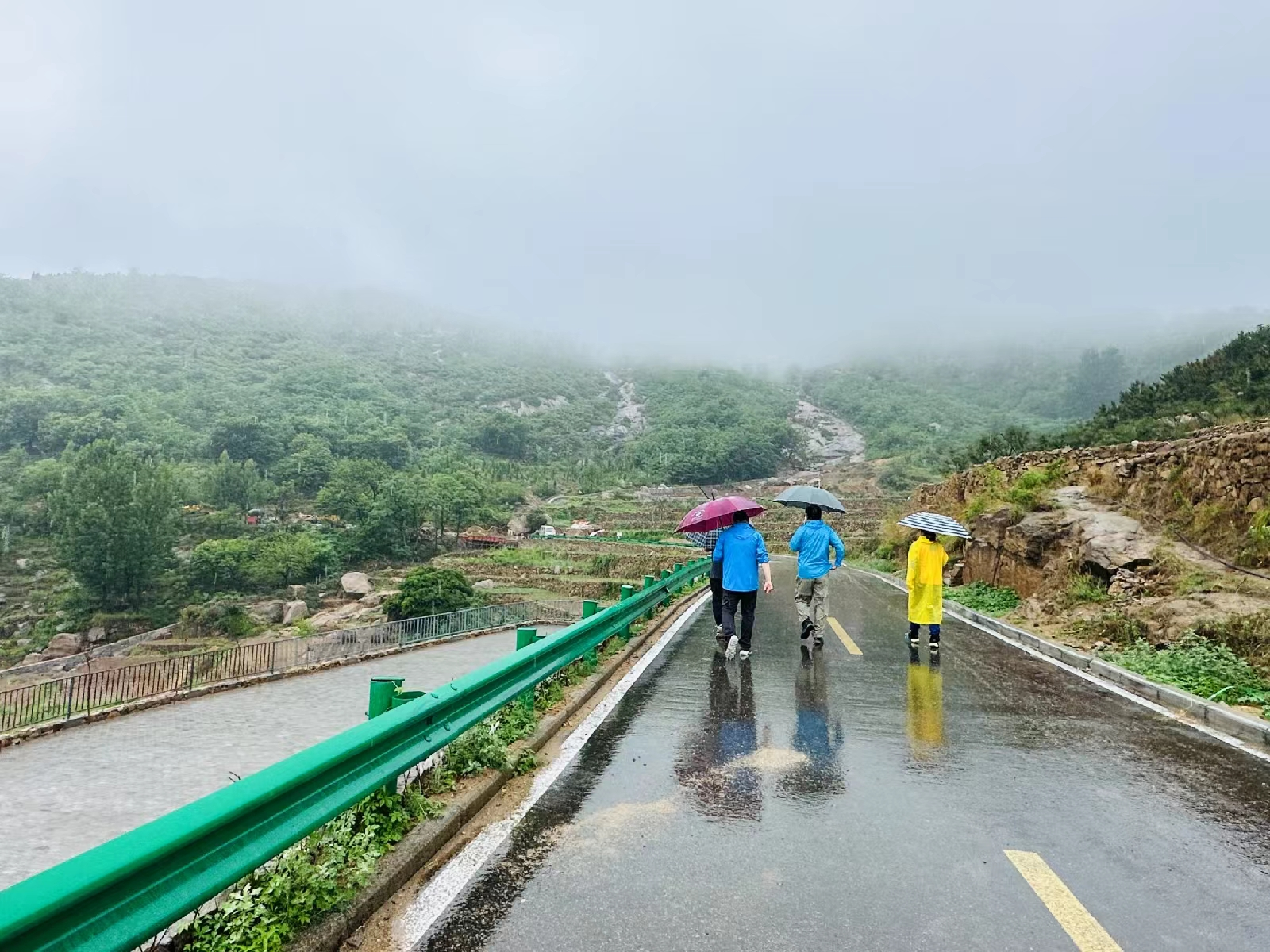 没有犹豫,没有矫情,停好车,打着伞,跟着队长,大家毫不迟疑地向西大山走去。