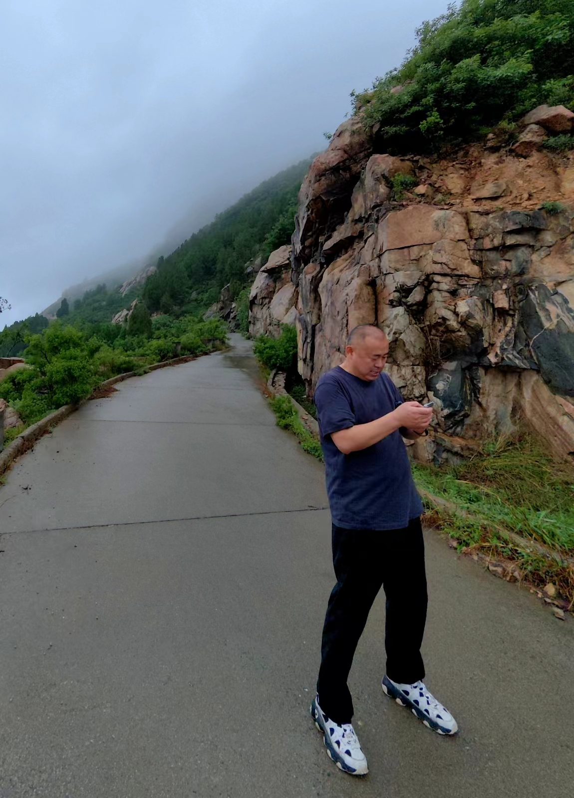 走完水库周边,桑椹采摘,大家已过足了手瘾,也过足了嘴瘾,看时间尚早,雨天登山危险,队长建议大家沿景区盘山路走走。
