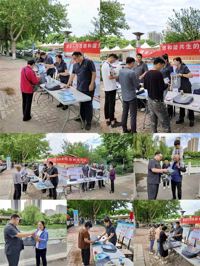 为贯彻落实“尊重自然、顺应自然、保护自然”的精神,6月5日上午,宝丰县人民法院组织行政综合审判庭干警在县城人流量大的路段和公园进行世界环境日普法宣传活动,本次宣传主题是:建设人与自然和谐共生的现代化,活动采取“1”个主会场+“N”个配套活动模式展开。