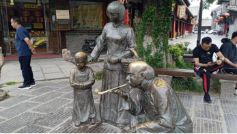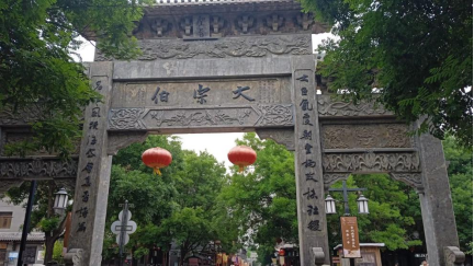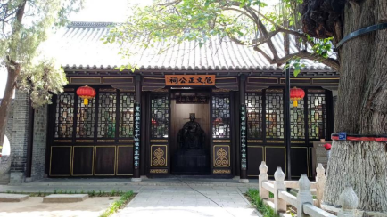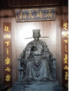 穿过范公亭,看到世界楸树之王与千年古槐绿荫下的“范文正公祠”;进得祠内,看到端坐正中的范公塑像,两旁有“先天下之忧而忧,后天下之乐而乐”的烫金对联。我心怀敬仰,向这位“济时良相”虔诚地三鞠躬。
