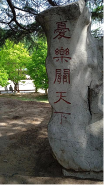 进得大门,一块“忧乐关天下”的石刻立于路旁,遂感受到范公文化的气息。