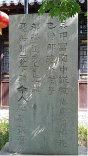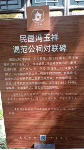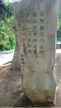 古槐下,耸立着一块石碑,刻爱国将领冯玉祥先生1934年5月拜谒范公亭时,触景生情,挥笔写下的一副联语:兵甲富胸中,纵教他虏骑横飞,也怕那范小老子;忧乐关天下,愿今人砥砺振奋,都学这秀才先生。