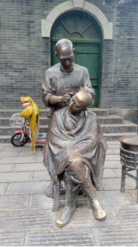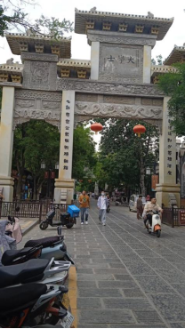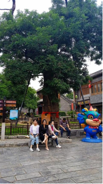 漫步在青石板古街,路边小桥流水,铜制雕塑、各式牌坊,千年古槐,商铺百货,特色小吃,游客如织;还有不少直播网红。临行时,见到有几辆北京、天津牌照的大客车徐徐驶来。