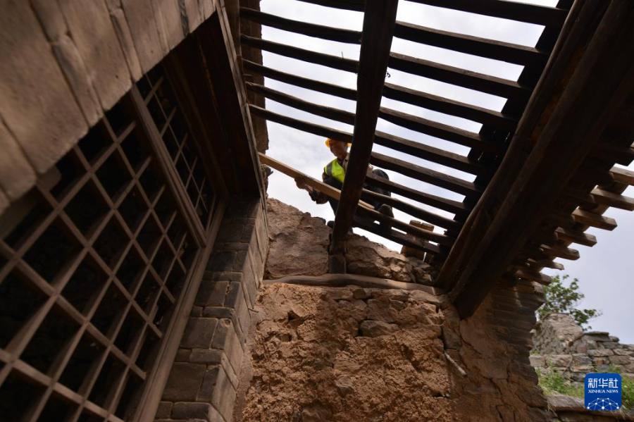 6月7日,施工人员在河北省石家庄市井陉县小梁江村进行古建筑修缮。骆学峰 摄