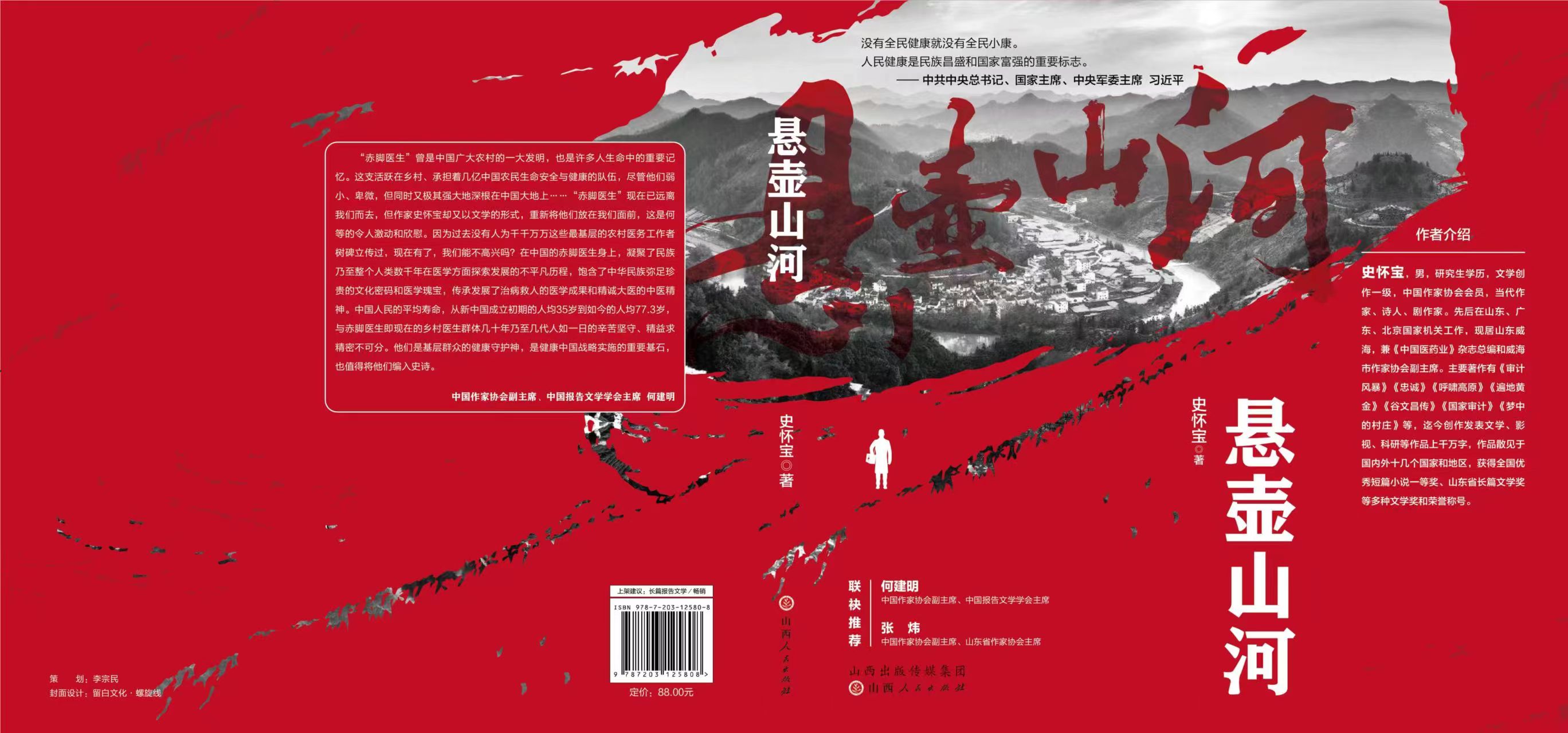 畅销书作家史怀宝长篇报告文学《悬壶山河》,最近由山西人民出版社出版,这是国内第一部全景式反映新中国成立特别是改革开放以来,乡村社区基层医生工作生活的长篇报告文学作品。中国作家协会副主席、中国报告文学主席何建明,中国作家协会副主席、山东省作家协会主席张炜联袂推荐。