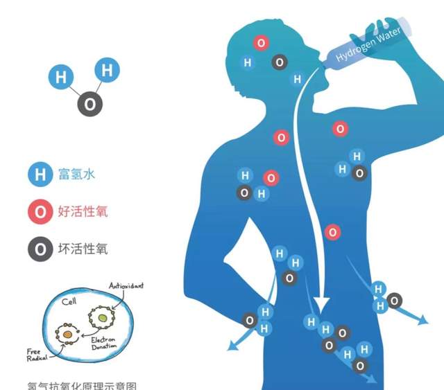 研究表明,氢分子可以清除羟自由基、亚硝酸阴离子等毒性自由基,而不会去破坏超氧阴离子、过氧化氢这种对于人体所需的有用的自由基,以此来减轻细胞的氧化损伤。