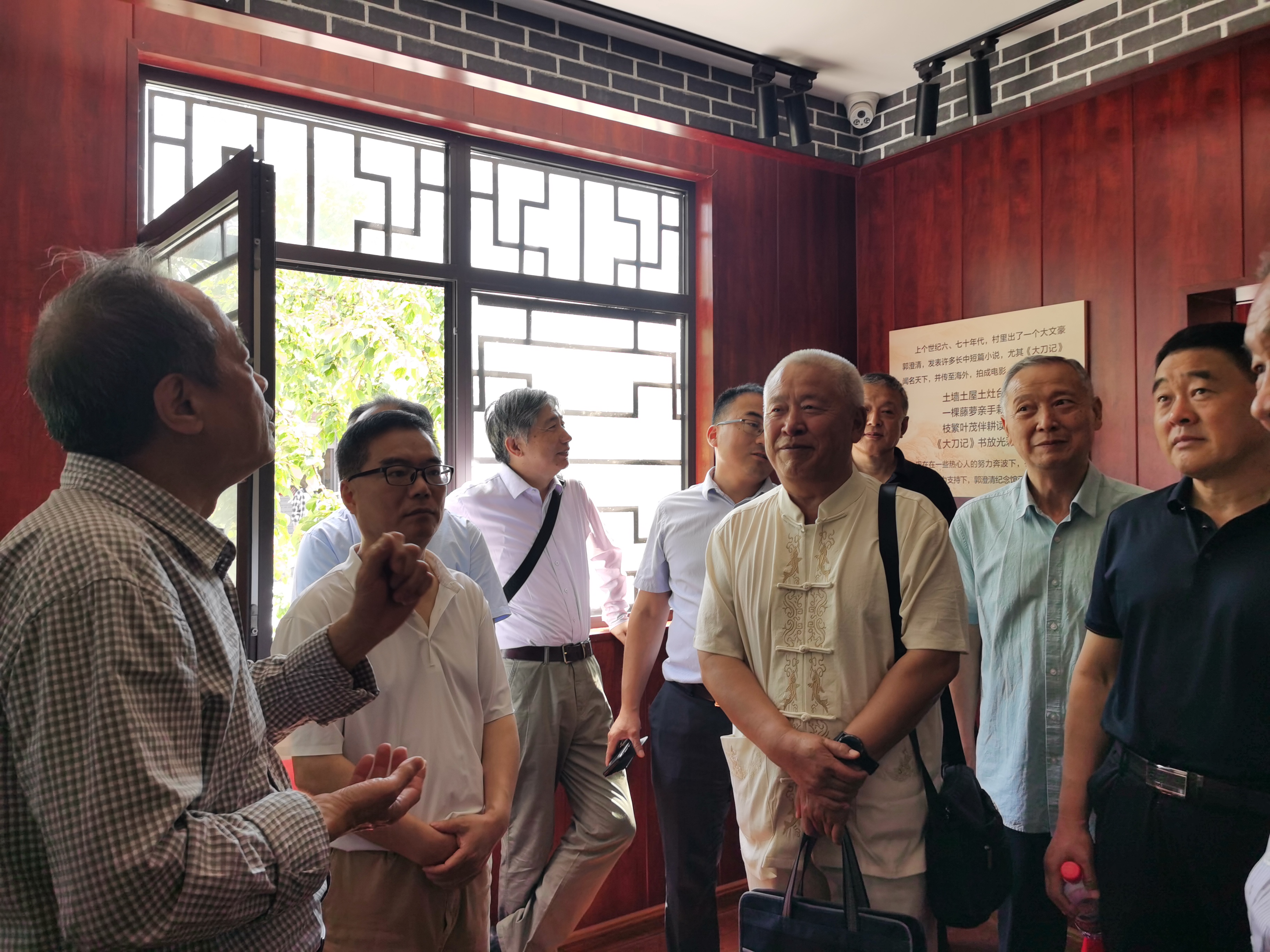 进入纪念馆,郭澄清之子郭洪志教授给我们每人赠送了一套最新版的红色经典《大刀记》,采风团成员每人提笔写下参观留言。郭洪志教授带领我们参观了郭澄清生平、文学创作作品、家史、及工作、生活方面的点点滴滴的往事。