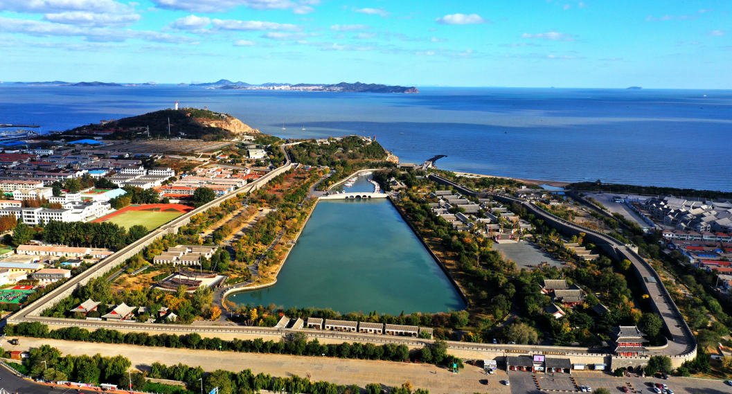 蓬莱阁坐落在丹崖山上,而丹崖山下的登州港(后称蓬莱水城)亦随着朝代更迭、政策变更与蓬莱阁山水相依,体现名楼与古港交相辉映的历史文化价值。