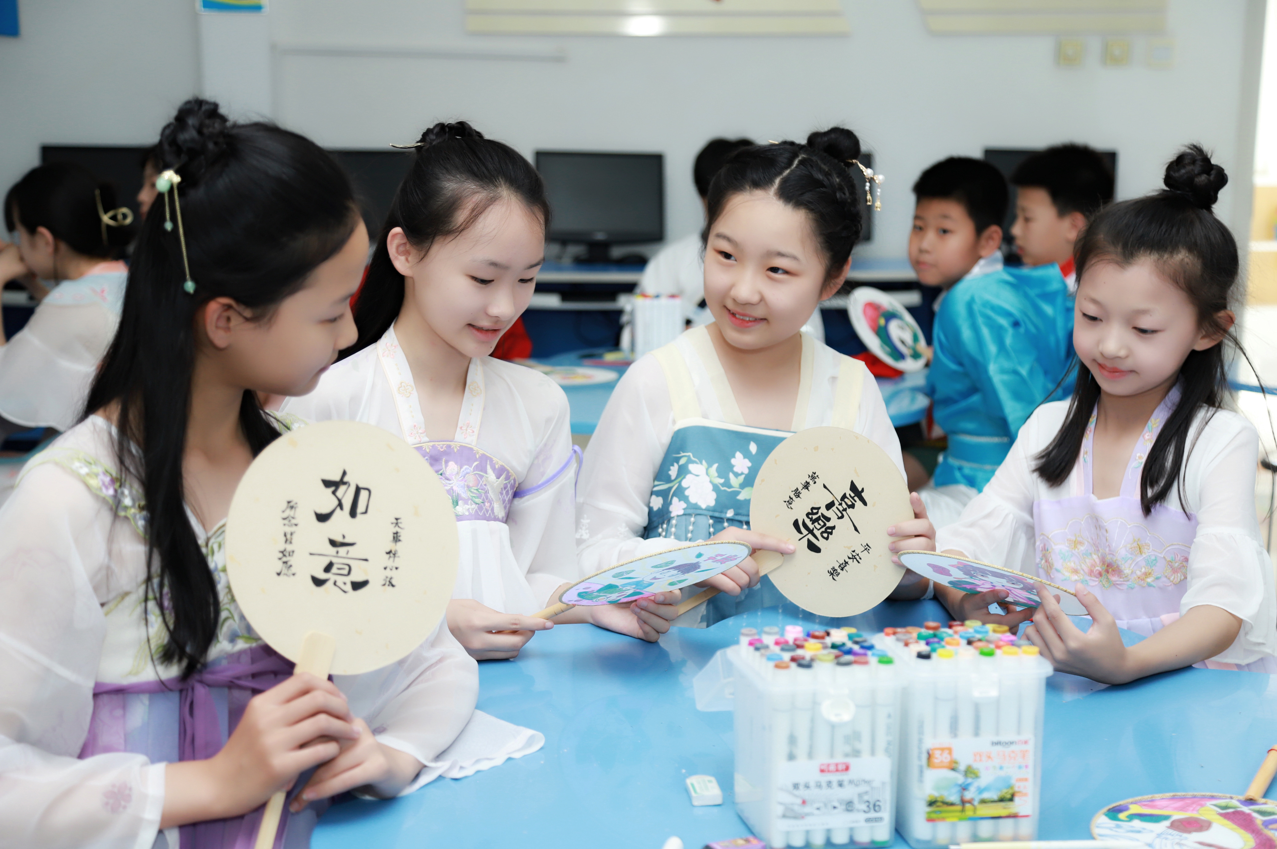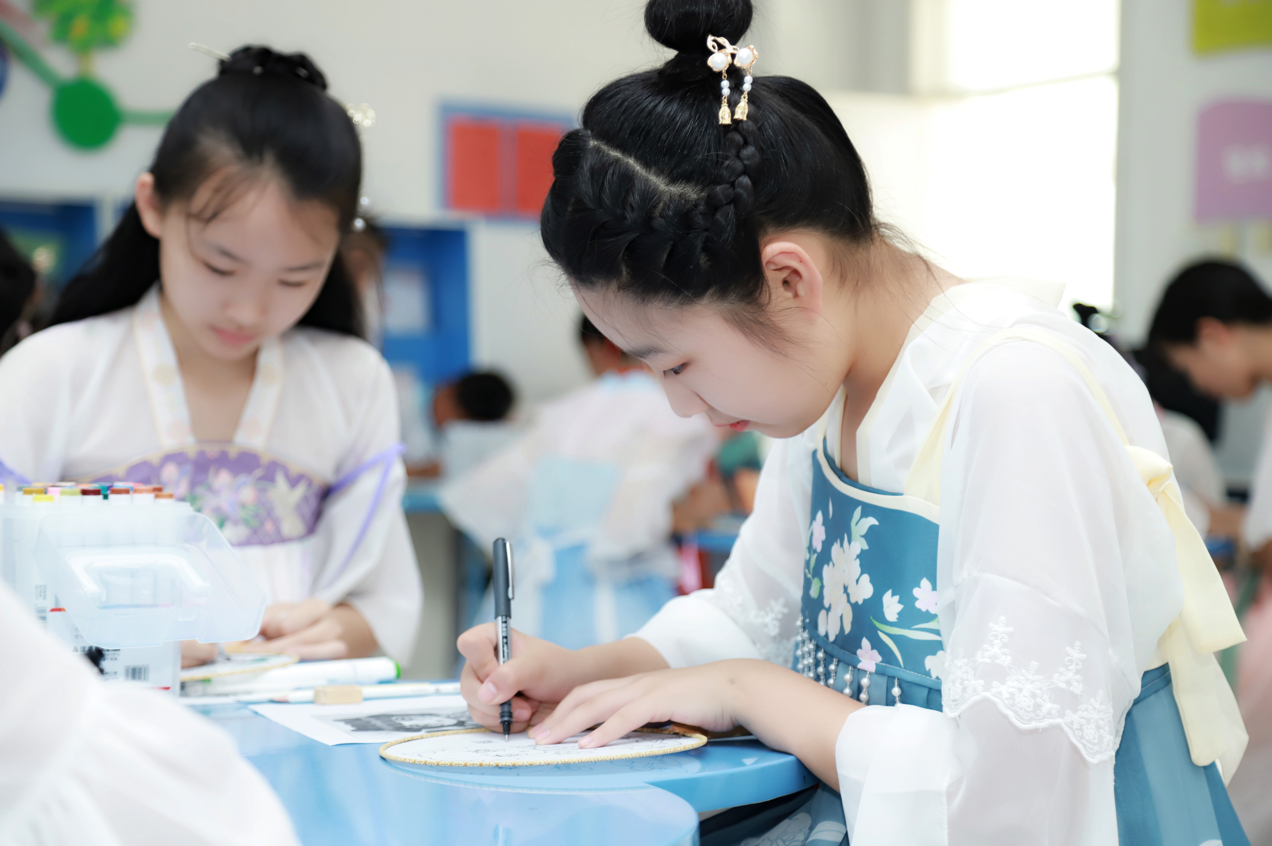 妙笔生花绘制团扇。