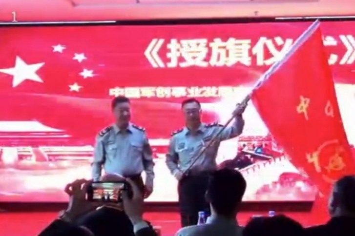 中国军创事业发展中心集团副总裁张智慧为《中国军创集团》吉林省办事处授旗、吉林省办事处常务副主席林伟授旗。