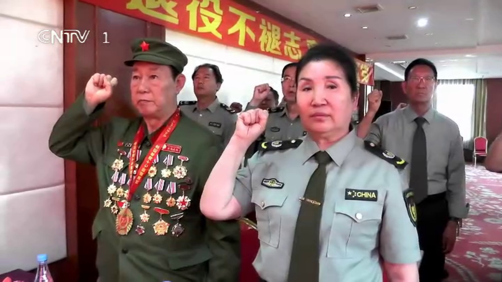授牌仪式在合唱《中华人民共和国国歌》歌声中拉开序幕,全体人员庄严举起右手重温了军人的誓言。